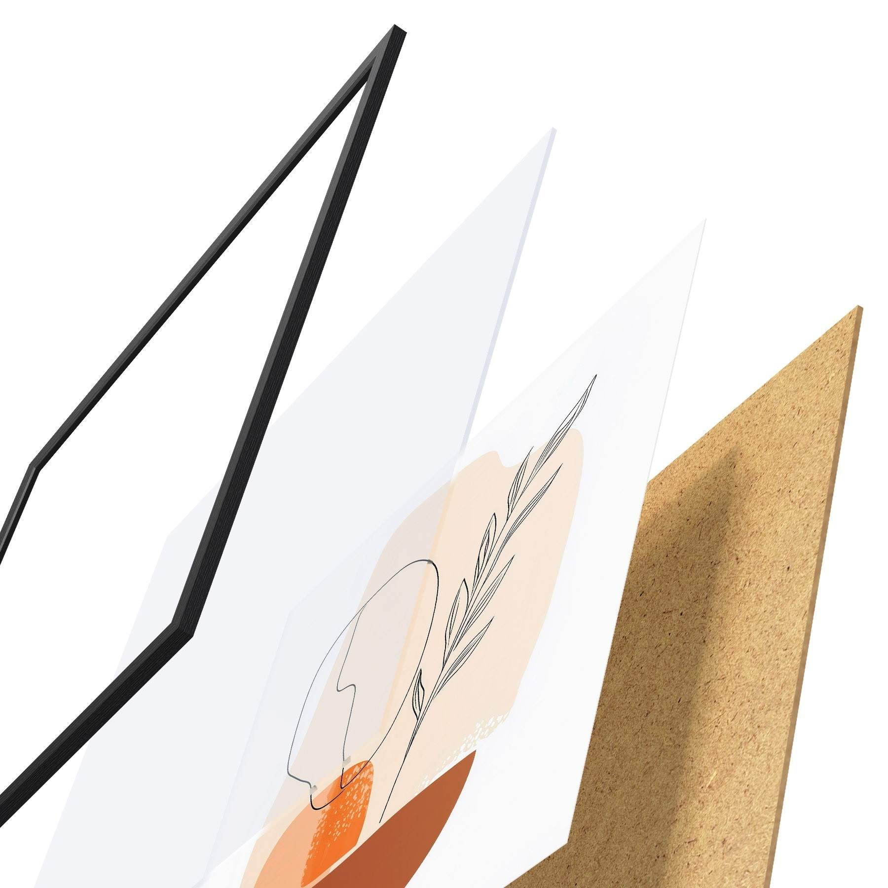Plakat składa się z ramy, pleksi, wydrukowanego obrazu i podkładu z płyty wiórowej. Plakat można natychmiast zawiesić na ścianie dzięki uchwytom z tyłu.