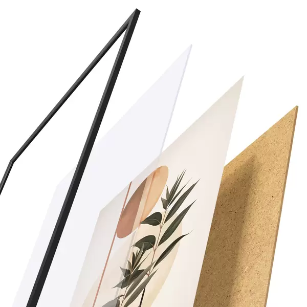 Plakat składa się z ramy, pleksi, wydrukowanego obrazu i podkładu z płyty wiórowej. Plakat można natychmiast zawiesić na ścianie dzięki uchwytom z tyłu.