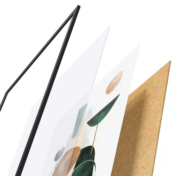 Plakat składa się z ramy, pleksi, wydrukowanego obrazu i podkładu z płyty wiórowej. Plakat można natychmiast zawiesić na ścianie dzięki uchwytom z tyłu.