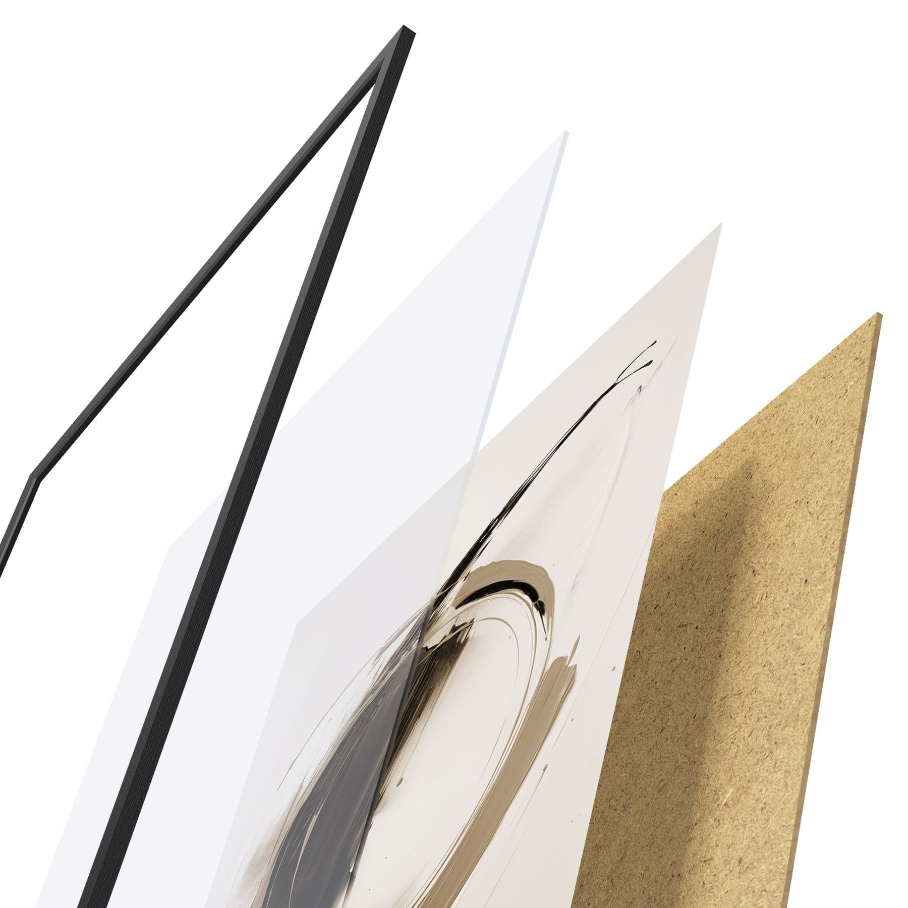 Plakat składa się z ramy, pleksi, wydrukowanego obrazu i podkładu z płyty wiórowej. Plakat można natychmiast zawiesić na ścianie dzięki uchwytom z tyłu.