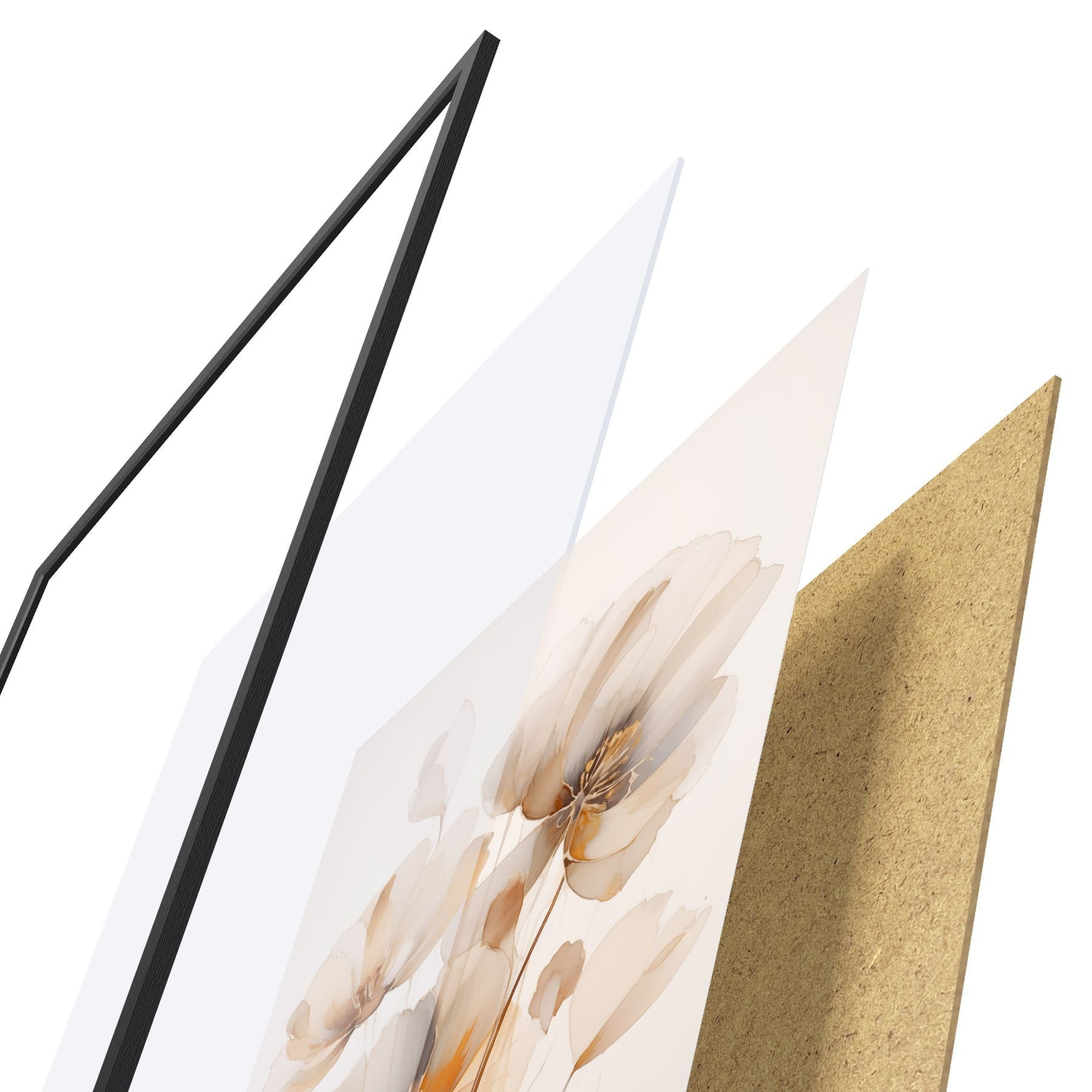Plakat składa się z ramy, pleksi, wydrukowanego obrazu i podkładu z płyty wiórowej. Plakat można natychmiast zawiesić na ścianie dzięki uchwytom z tyłu.