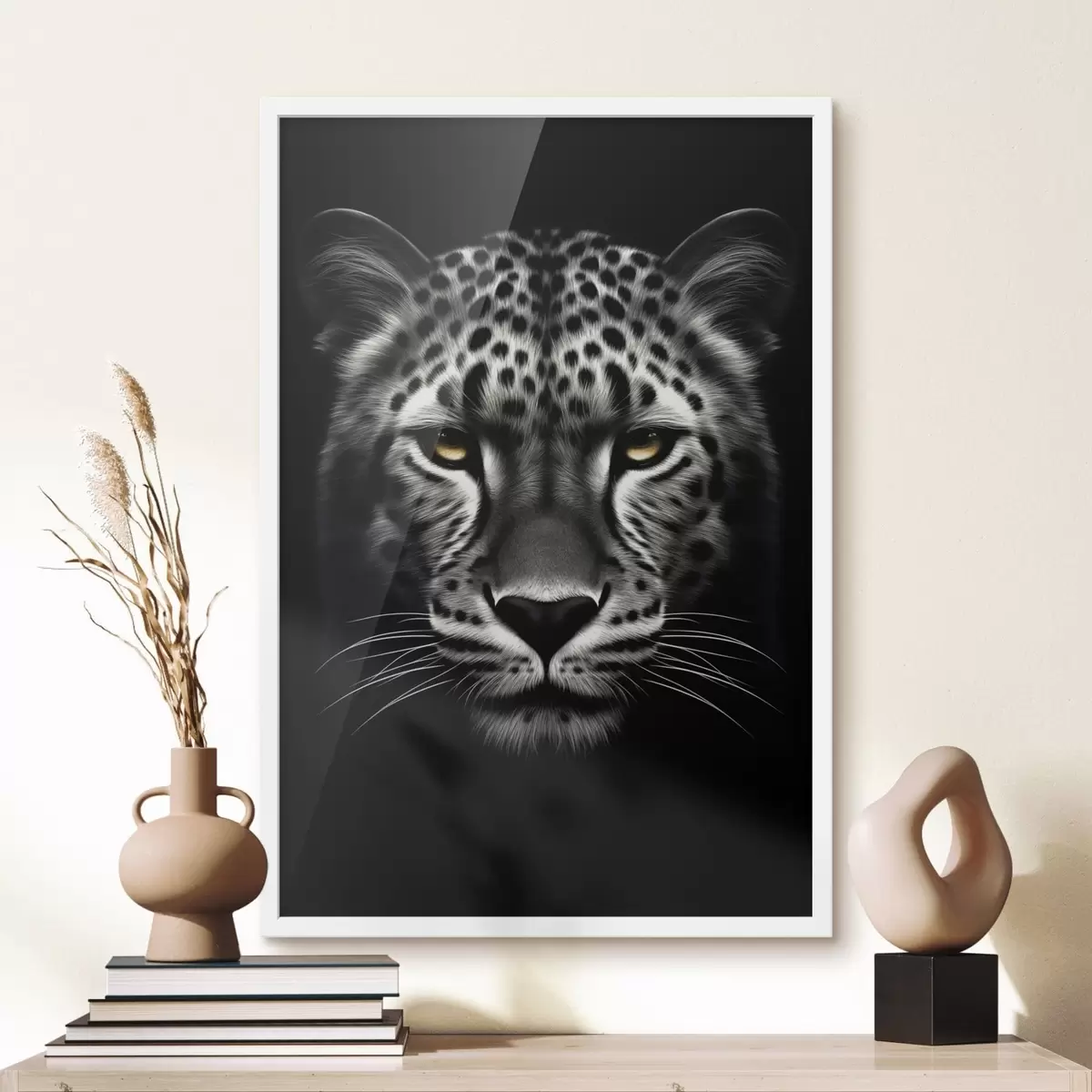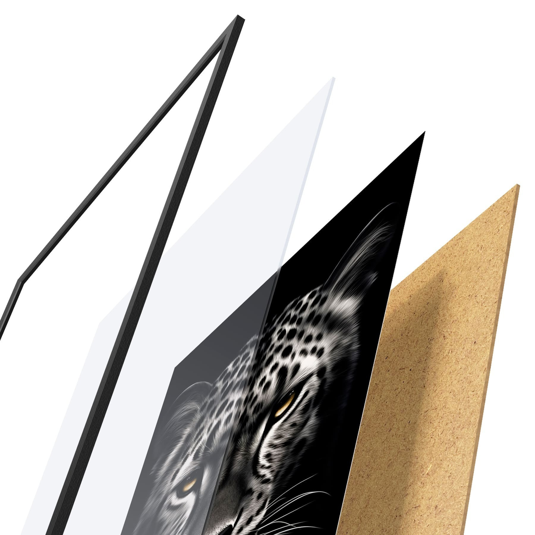 Plakat składa się z ramy, pleksi, wydrukowanego obrazu i podkładu z płyty wiórowej. Plakat można natychmiast zawiesić na ścianie dzięki uchwytom z tyłu.