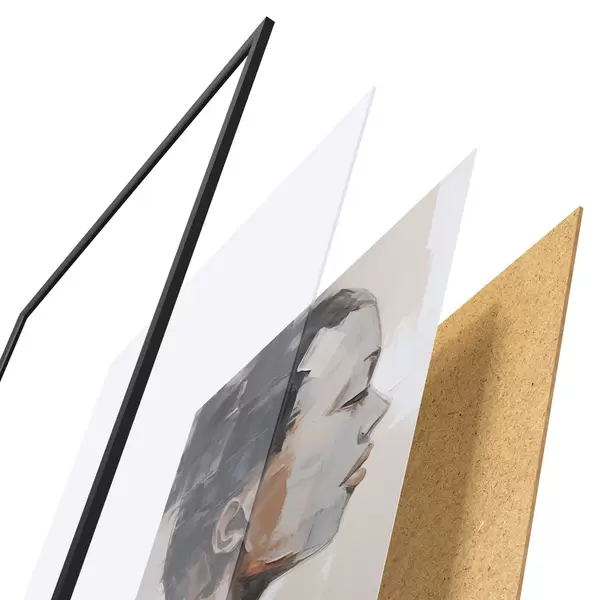 Plakat składa się z ramy, pleksi, wydrukowanego obrazu i podkładu z płyty wiórowej. Plakat można natychmiast zawiesić na ścianie dzięki uchwytom z tyłu.