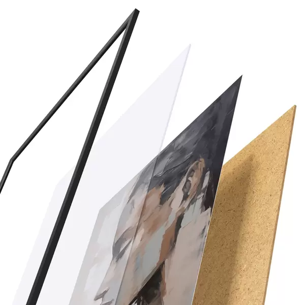 Plakat składa się z ramy, pleksi, wydrukowanego obrazu i podkładu z płyty wiórowej. Plakat można natychmiast zawiesić na ścianie dzięki uchwytom z tyłu.