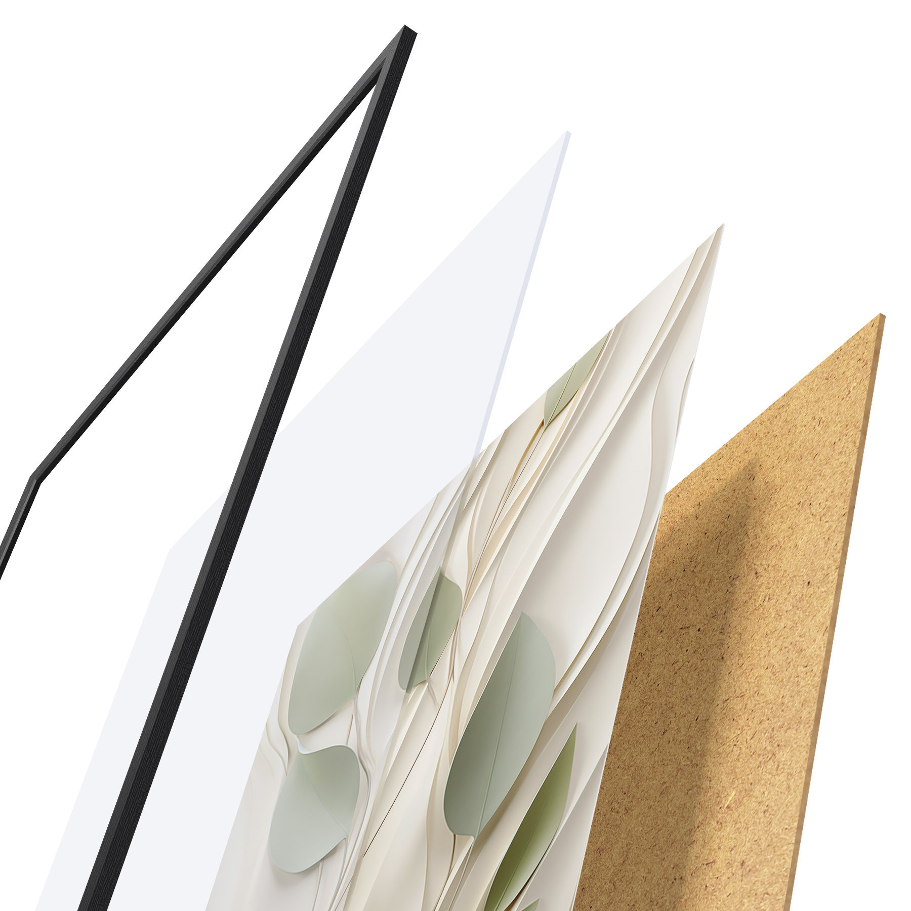 Plakat składa się z ramy, pleksi, wydrukowanego obrazu i podkładu z płyty wiórowej. Plakat można natychmiast zawiesić na ścianie dzięki uchwytom z tyłu.