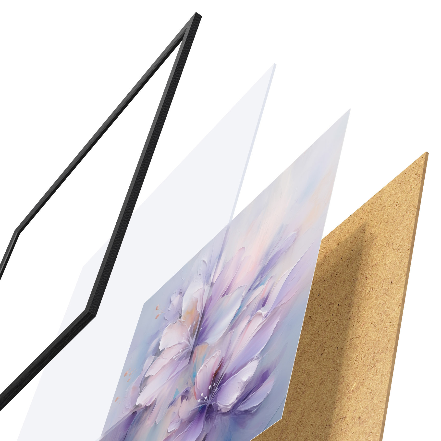 Plakat składa się z ramy, pleksi, wydrukowanego obrazu i podkładu z płyty wiórowej. Plakat można natychmiast zawiesić na ścianie dzięki uchwytom z tyłu.