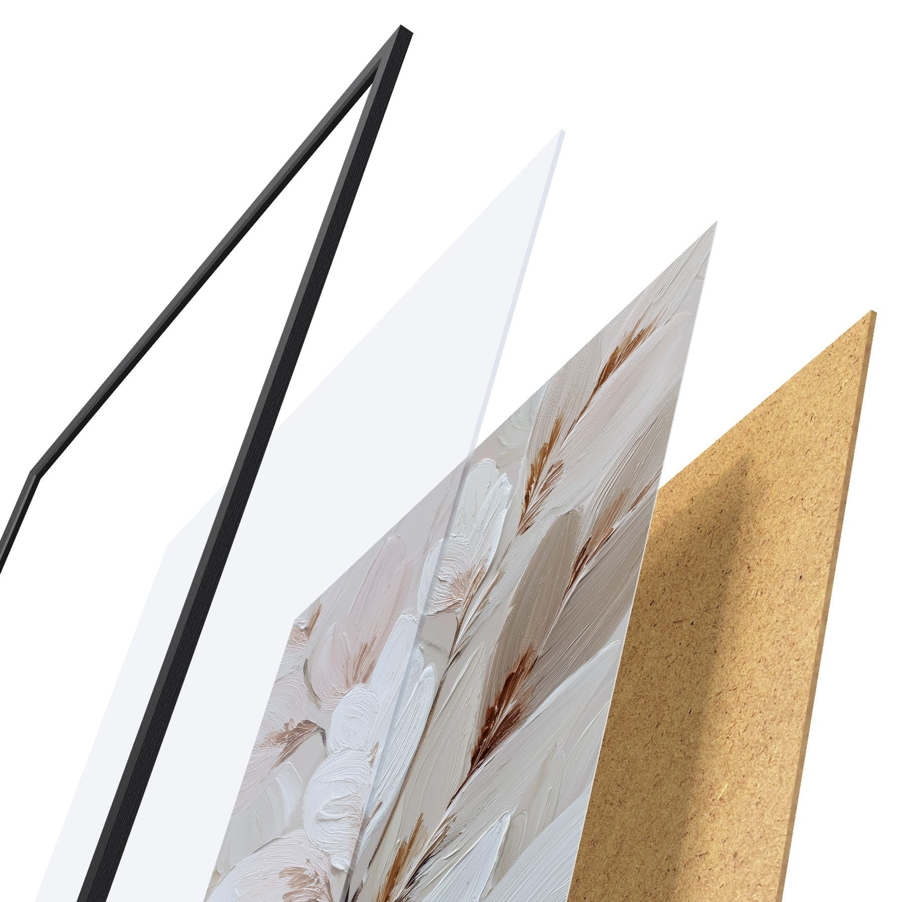 Plakat składa się z ramy, pleksi, wydrukowanego obrazu i podkładu z płyty wiórowej. Plakat można natychmiast zawiesić na ścianie dzięki uchwytom z tyłu.