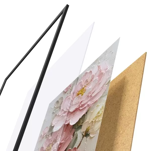 Plakat składa się z ramy, pleksi, wydrukowanego obrazu i podkładu z płyty wiórowej. Plakat można natychmiast zawiesić na ścianie dzięki uchwytom z tyłu.