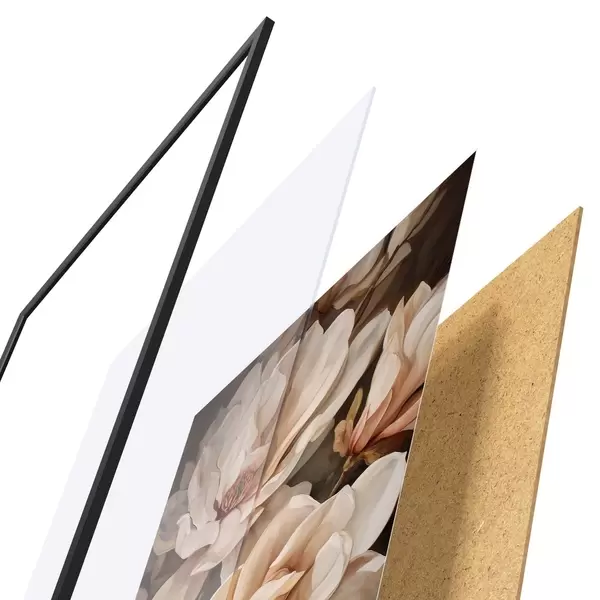 Plakat składa się z ramy, pleksi, wydrukowanego obrazu i podkładu z płyty wiórowej. Plakat można natychmiast zawiesić na ścianie dzięki uchwytom z tyłu.
