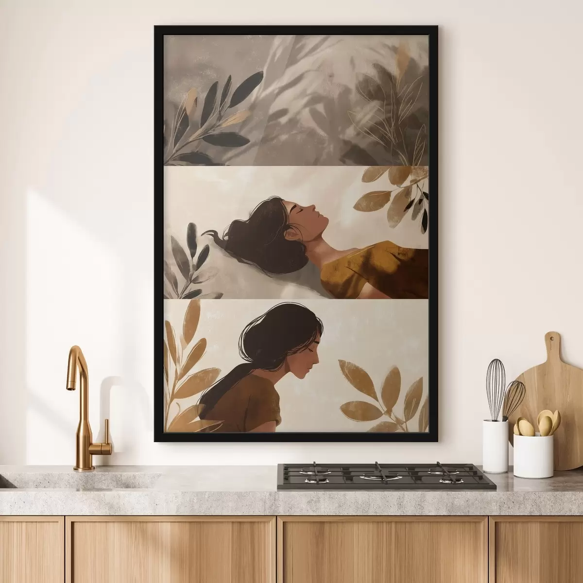 Poster Tryptyk „Kobieta z liśćmi” Nr f49018