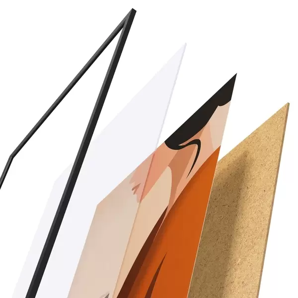 Plakat składa się z ramy, pleksi, wydrukowanego obrazu i podkładu z płyty wiórowej. Plakat można natychmiast zawiesić na ścianie dzięki uchwytom z tyłu.