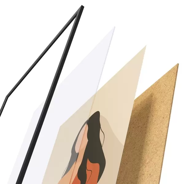 Plakat składa się z ramy, pleksi, wydrukowanego obrazu i podkładu z płyty wiórowej. Plakat można natychmiast zawiesić na ścianie dzięki uchwytom z tyłu.