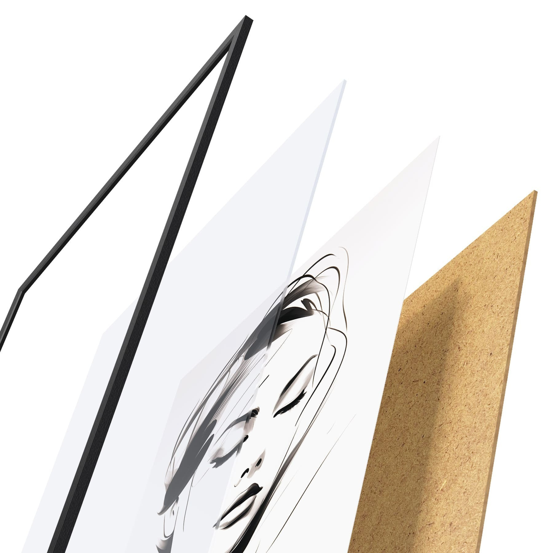Plakat składa się z ramy, pleksi, wydrukowanego obrazu i podkładu z płyty wiórowej. Plakat można natychmiast zawiesić na ścianie dzięki uchwytom z tyłu.