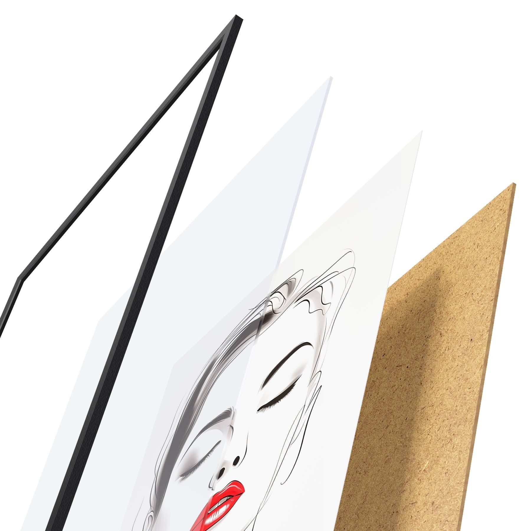 Plakat składa się z ramy, pleksi, wydrukowanego obrazu i podkładu z płyty wiórowej. Plakat można natychmiast zawiesić na ścianie dzięki uchwytom z tyłu.