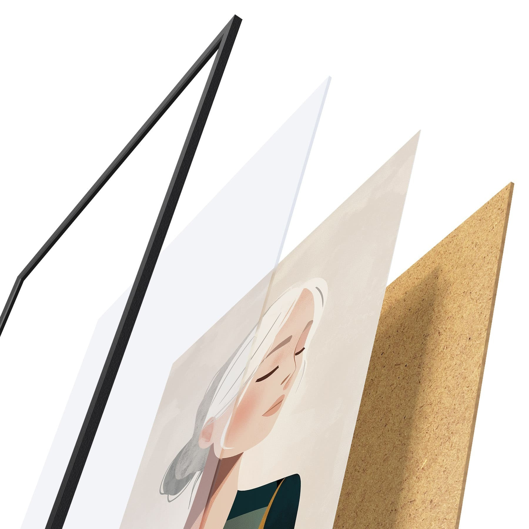 Plakat składa się z ramy, pleksi, wydrukowanego obrazu i podkładu z płyty wiórowej. Plakat można natychmiast zawiesić na ścianie dzięki uchwytom z tyłu.