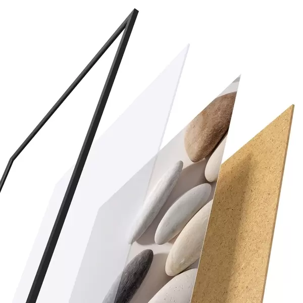 Plakat składa się z ramy, pleksi, wydrukowanego obrazu i podkładu z płyty wiórowej. Plakat można natychmiast zawiesić na ścianie dzięki uchwytom z tyłu.