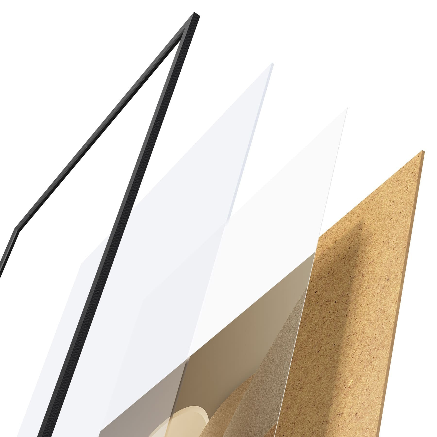 Plakat składa się z ramy, pleksi, wydrukowanego obrazu i podkładu z płyty wiórowej. Plakat można natychmiast zawiesić na ścianie dzięki uchwytom z tyłu.