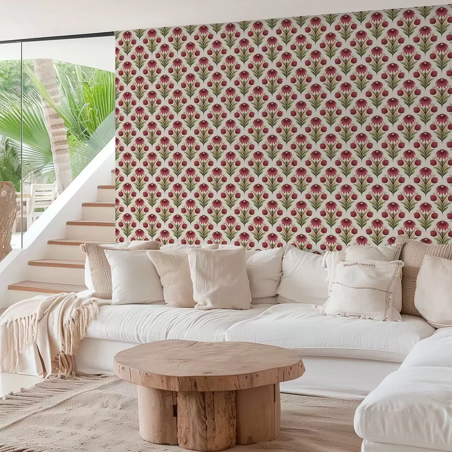 Symetryczny ornament kwiatowy w bogatej czerwono-zielonej kolorystyce