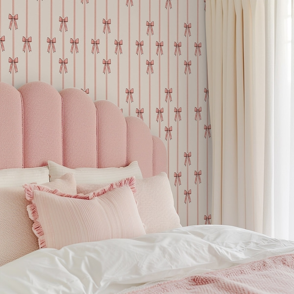 Pionowy ornament z białymi kwiatami na różowym tle