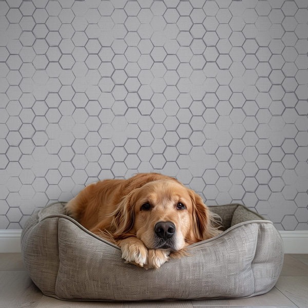 Drobna sześciokątna siatka na jasnoszarym tle z fakturą