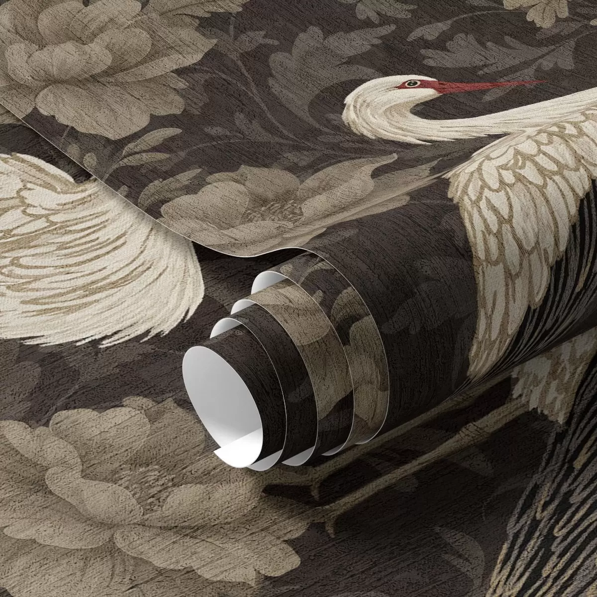 Tapety Żurawie wśród dużych kwiatów w klasycznej palecie pasteli Nr. a00108