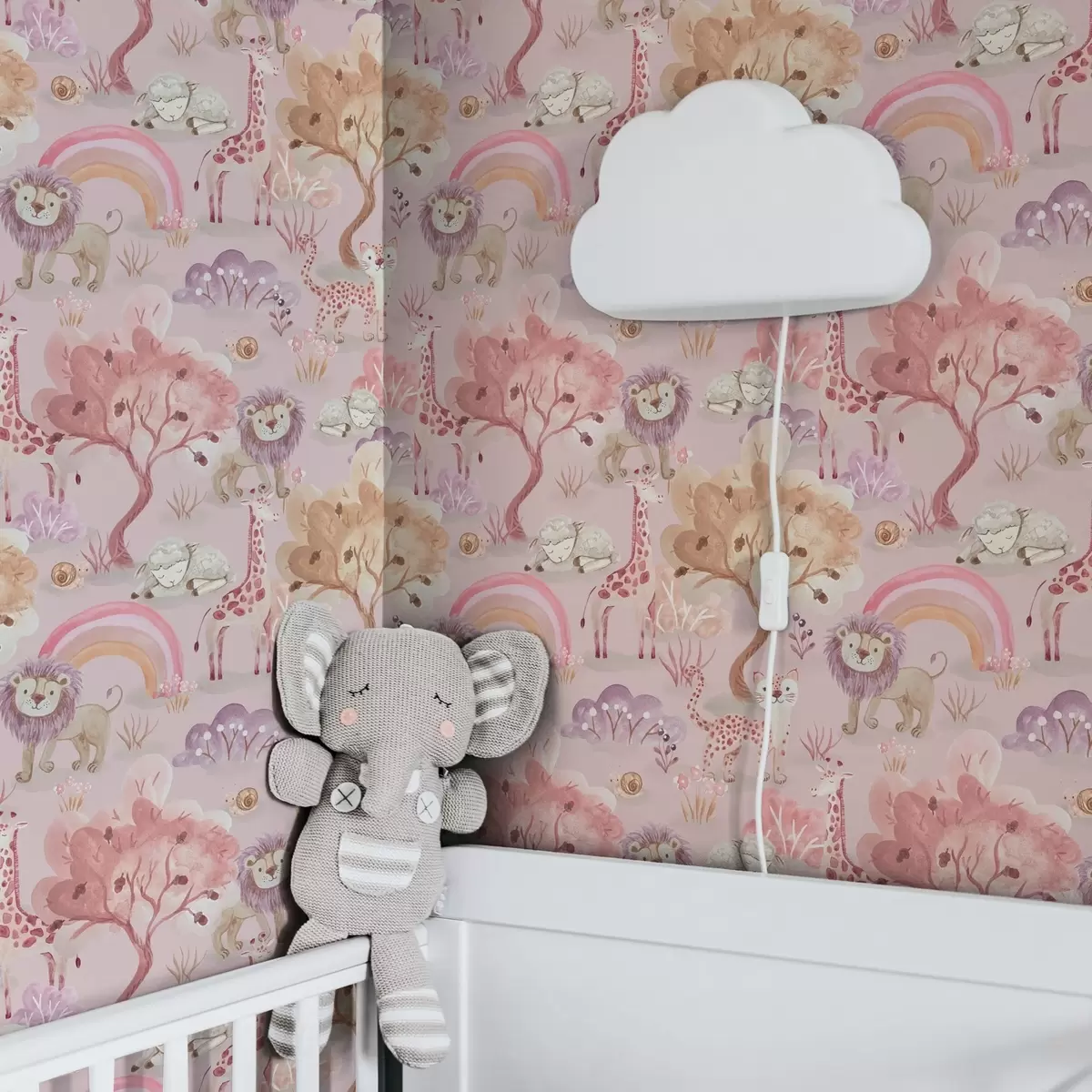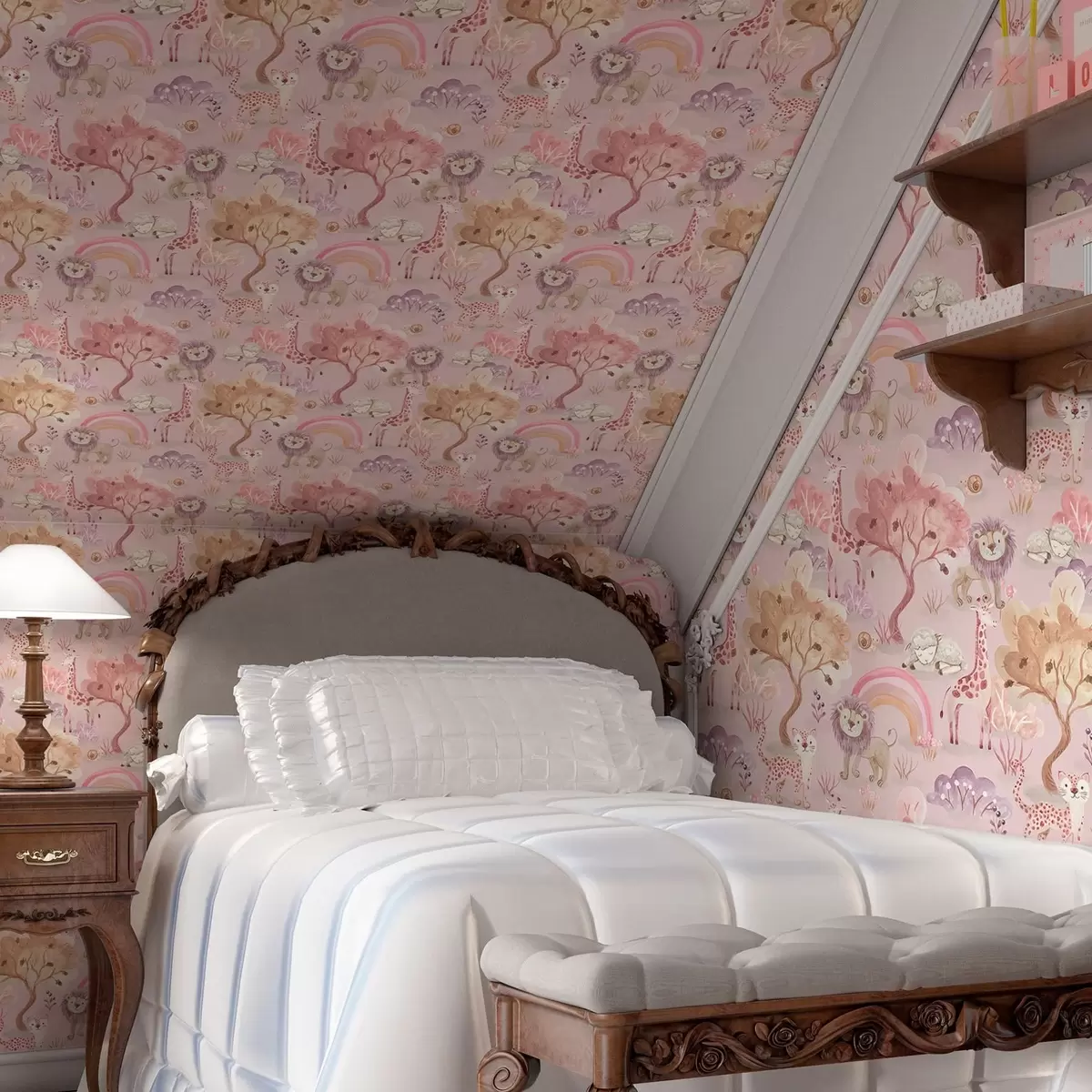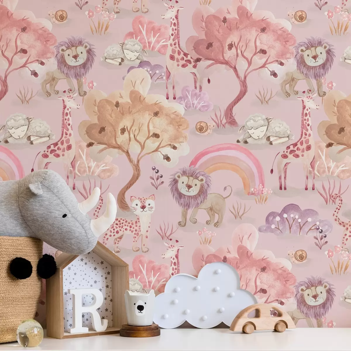 Tapety Lwy, żyrafy i tęcze w pastelowym lesie Nr. a00112