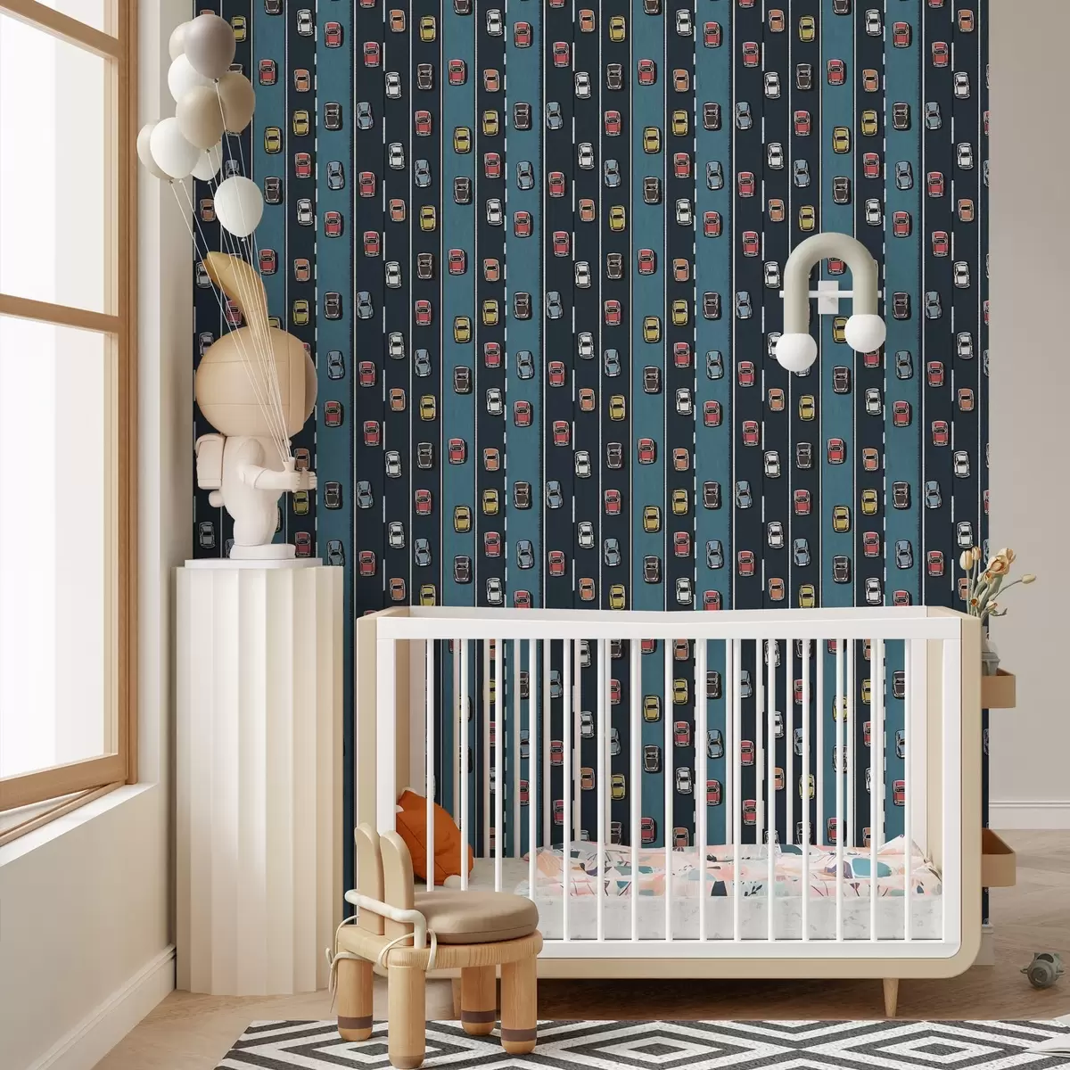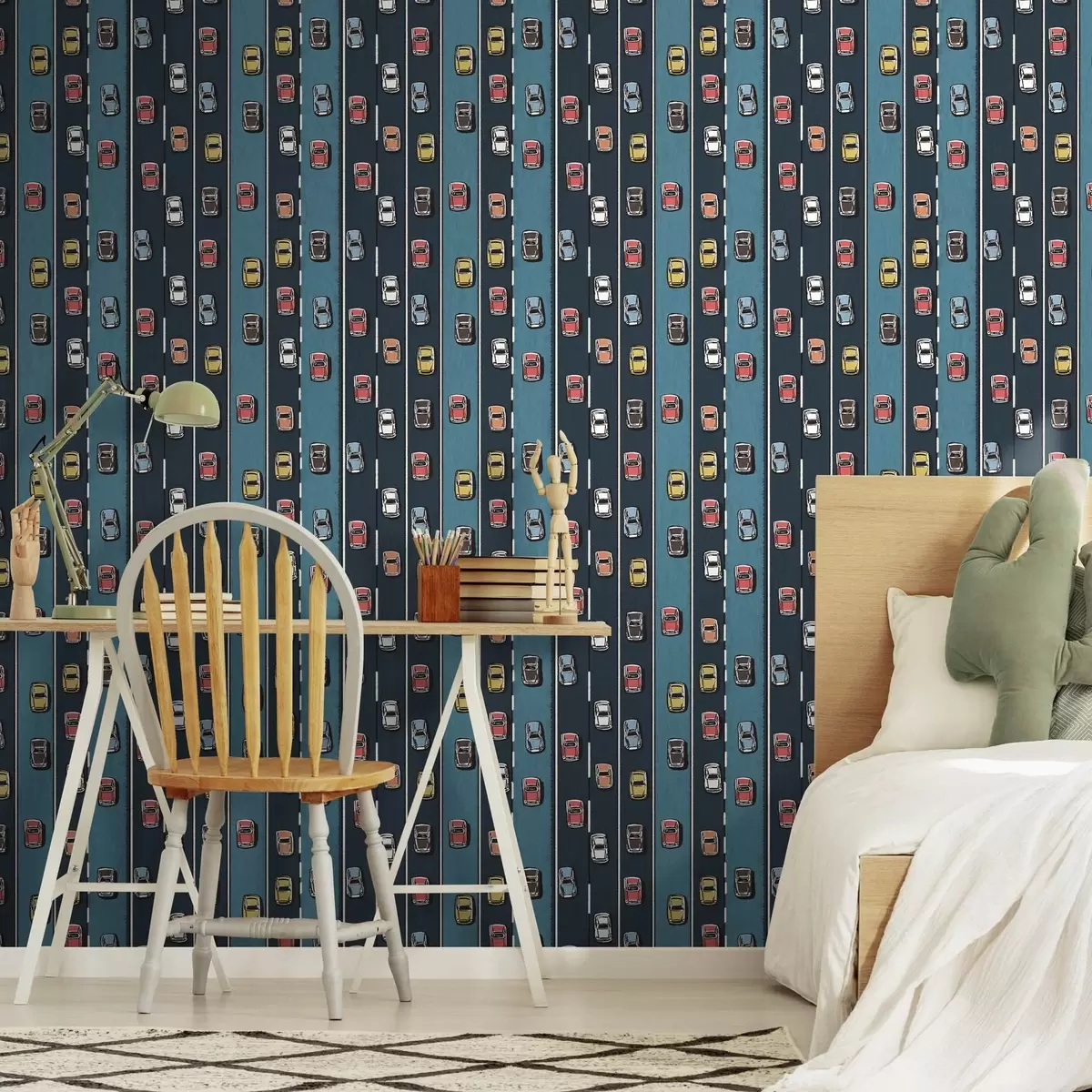 Tapety Samochód retro na granatowej drodze w stylu lat 60 Nr. a00118