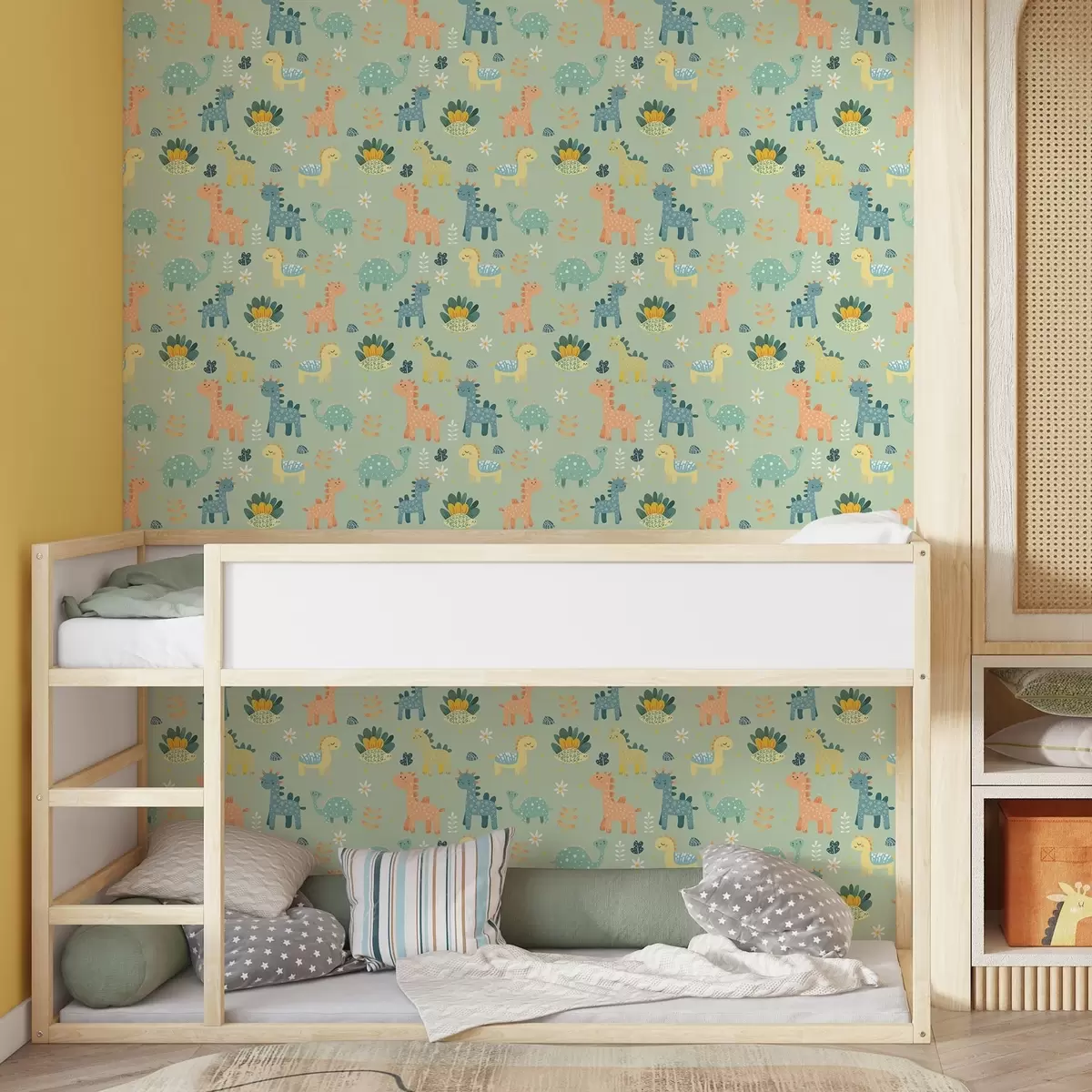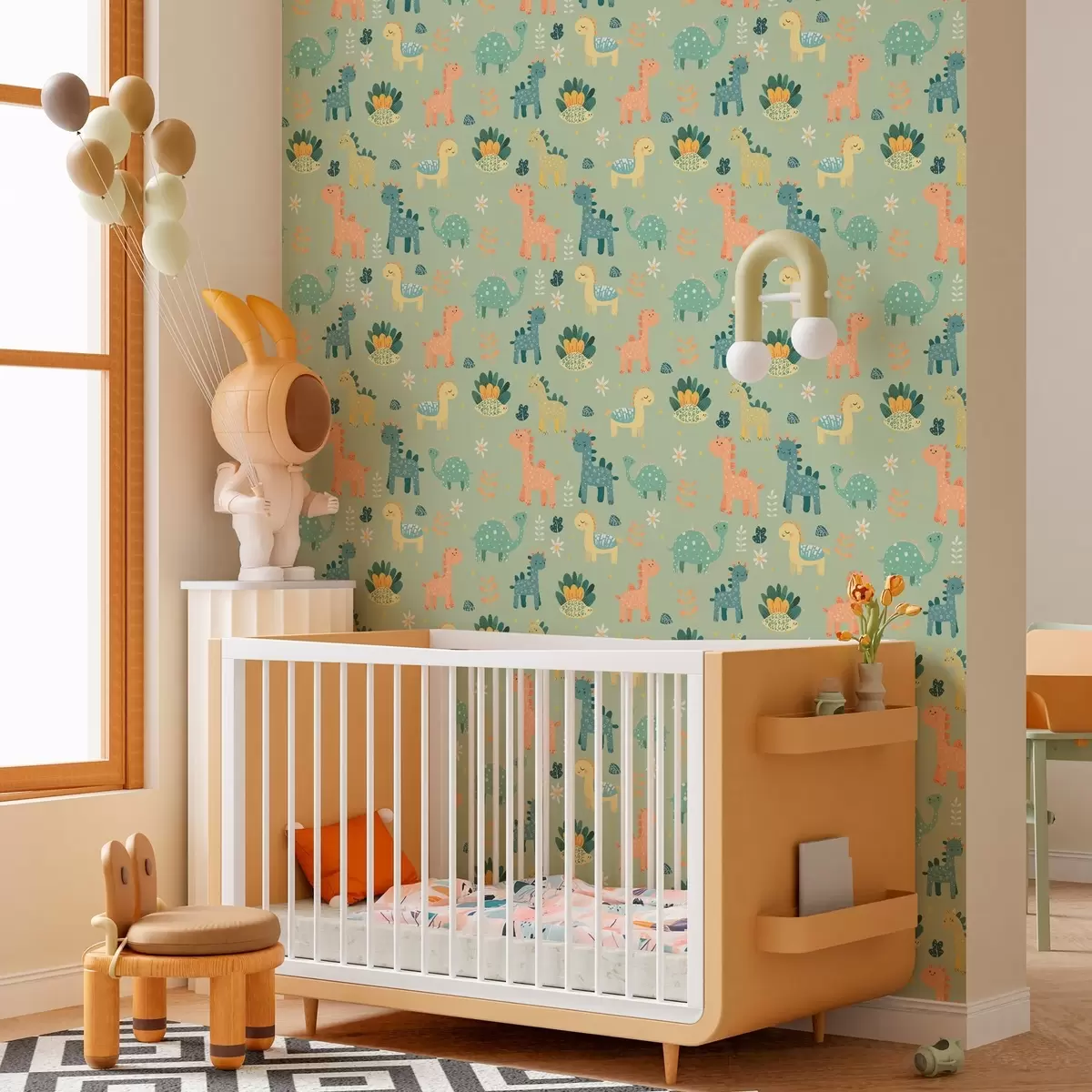 Tapety Zabawne dinozaury w delikatnej zielonej palecie na jasnym tle Nr. a00125v1