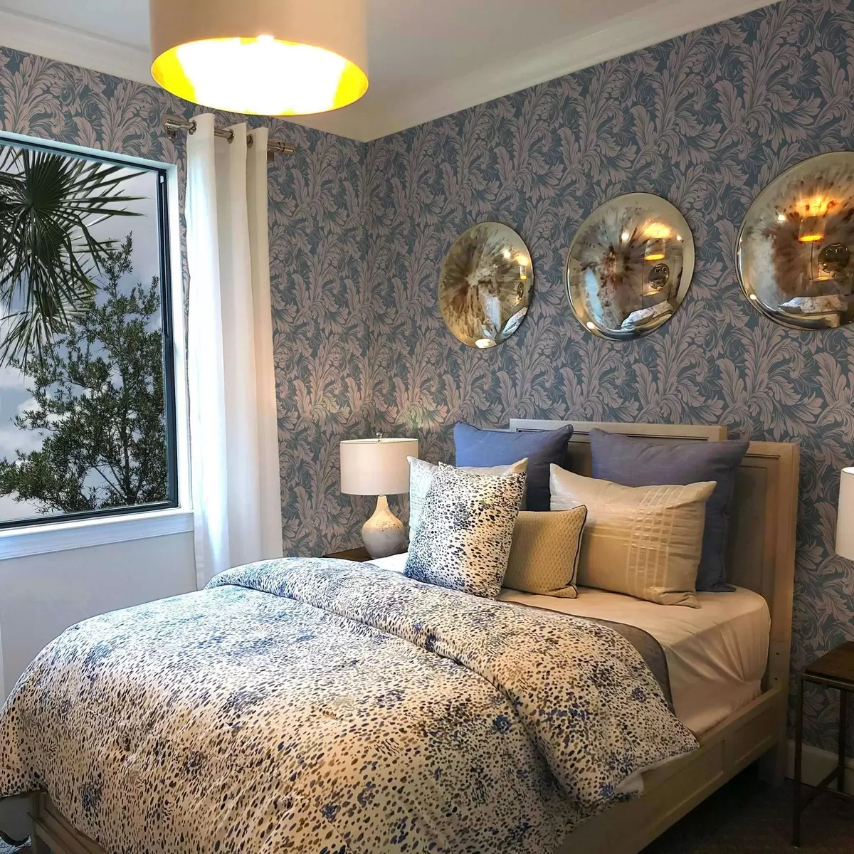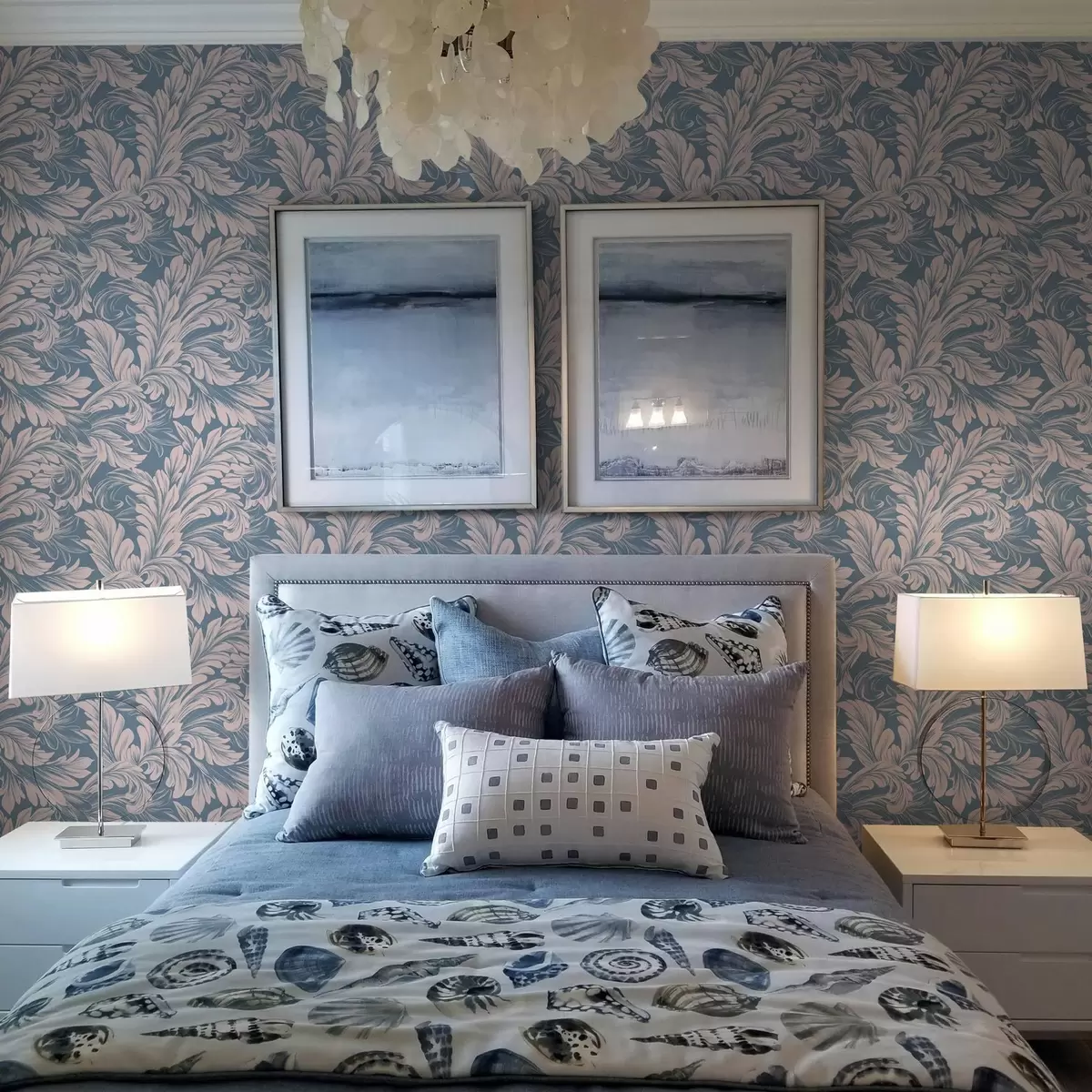 Tapety Loki roślinne w kremowych odcieniach na niebieskim i szarym tle Nr. a00135v2