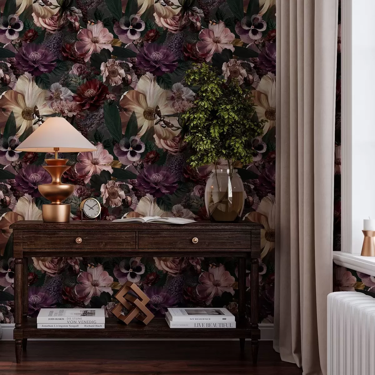 Tapety Kwiatowy nadruk w ciemnych kolorach Nr. a00147