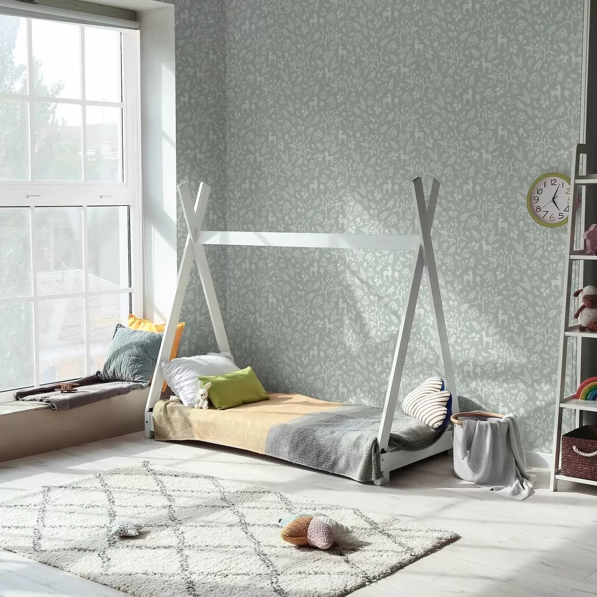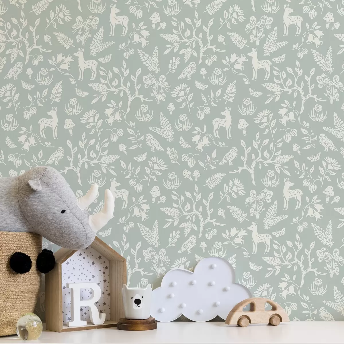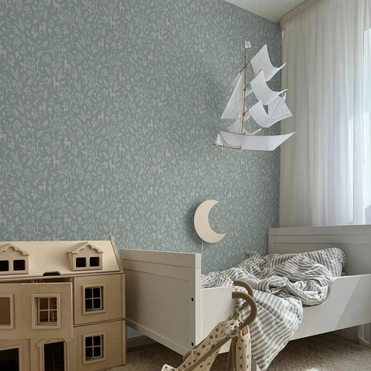 Tapety Skandynawskie zwierzęta i rośliny na miętowym tle Nr. a00149