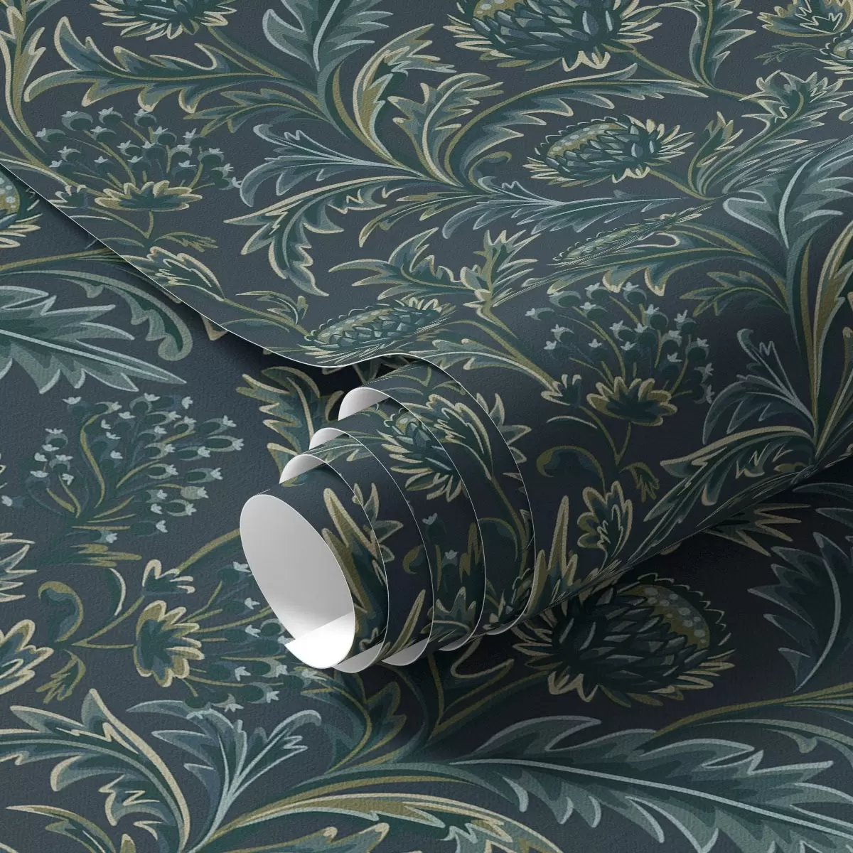 Tapety Ciemnozielony kwiatowy wzór z karczochami Nr. a00186