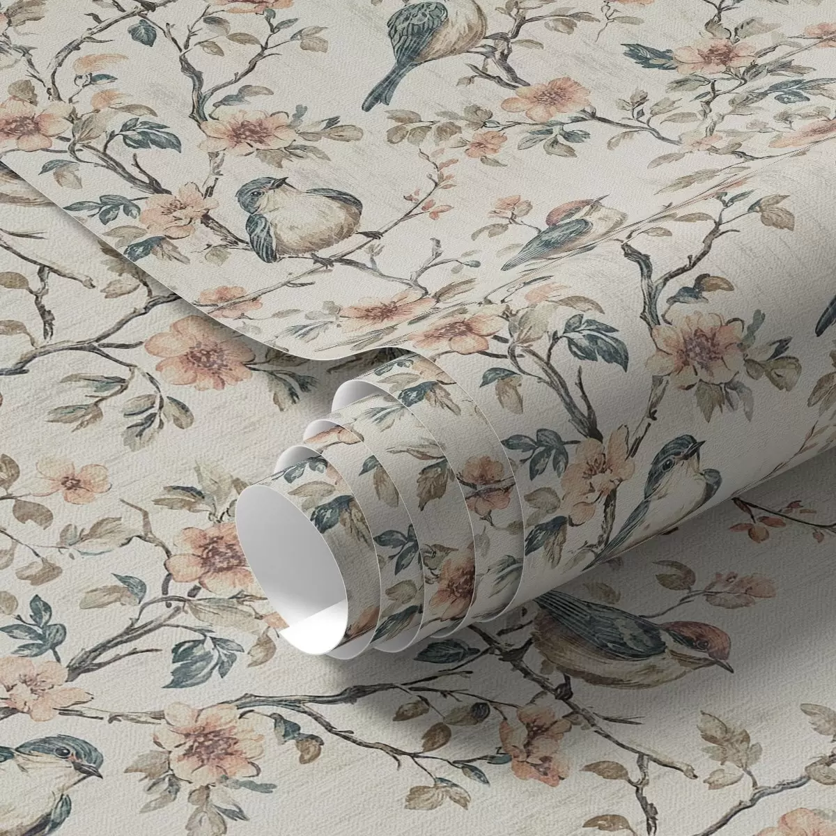 Tapety Ptaki na gałęziach z kwiatami w stylu retro akwareli Nr. a00197