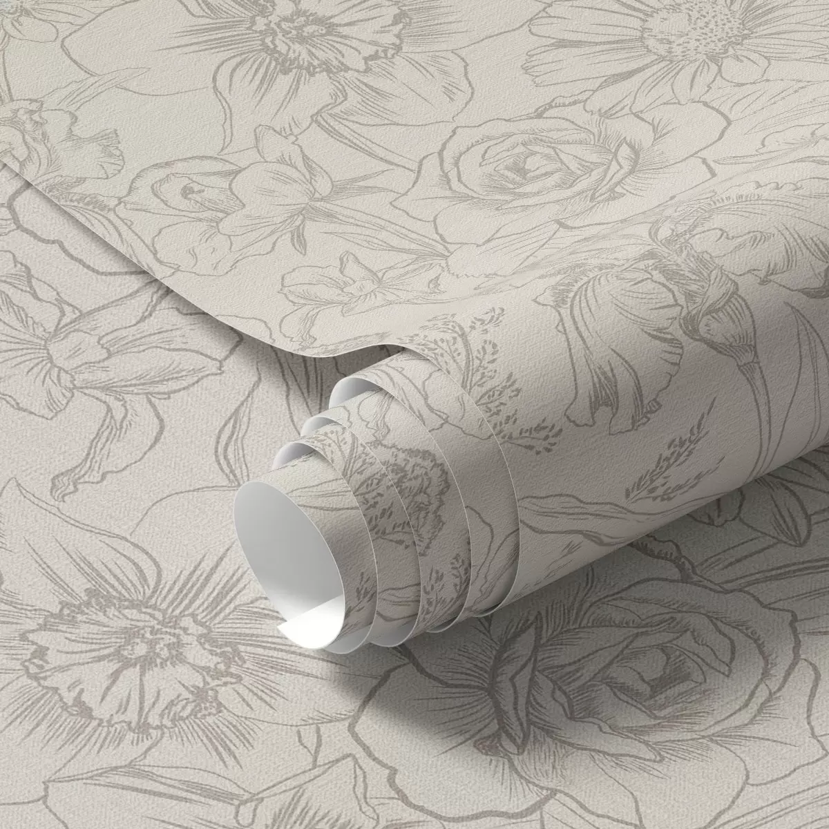 Tapety Konturowe kwiaty na kremowym tle, delikatny kwiatowy wzór Nr. a00218