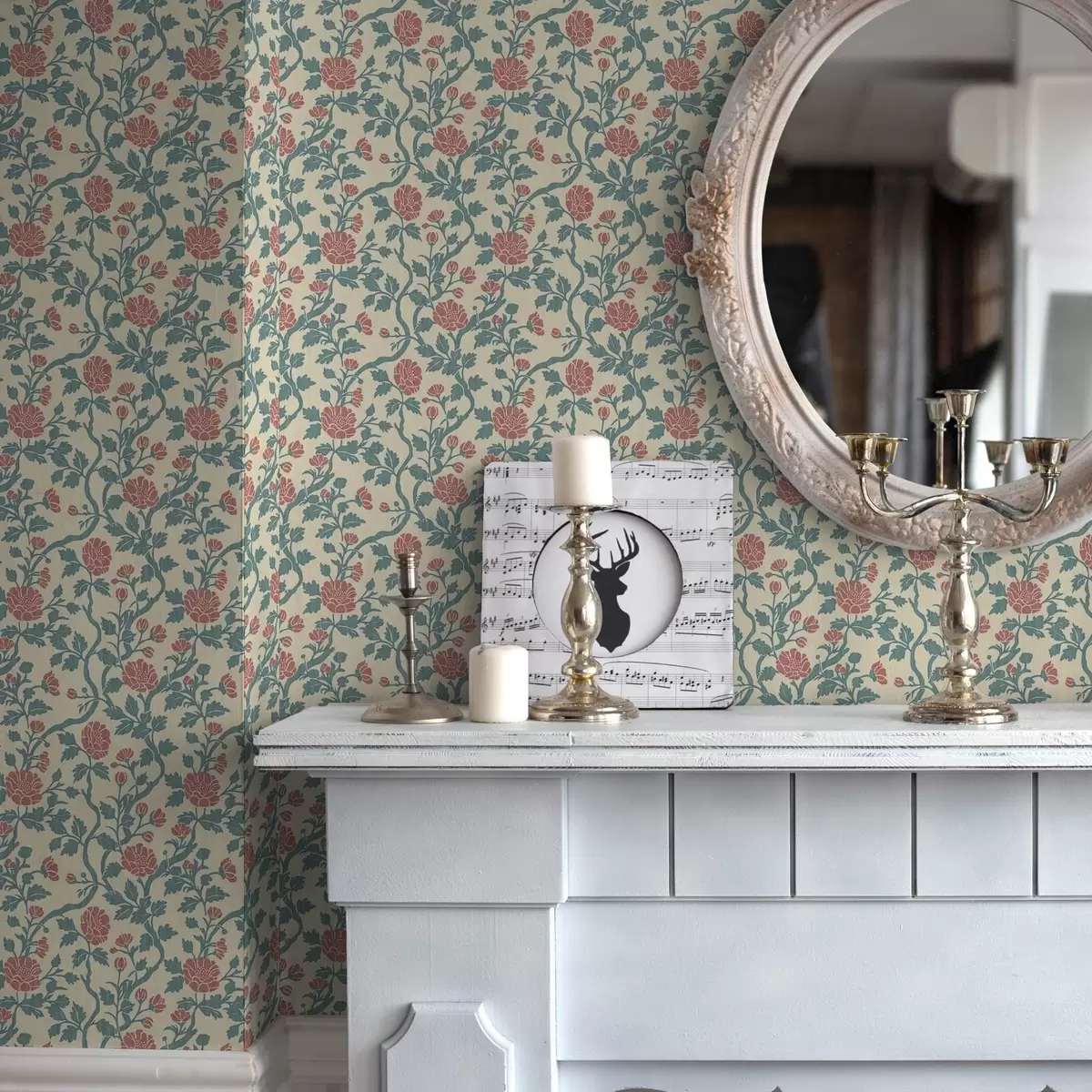 Tapety Retro wzór z kwiatami w kolorze czerwonym i zielonym Nr. a00250