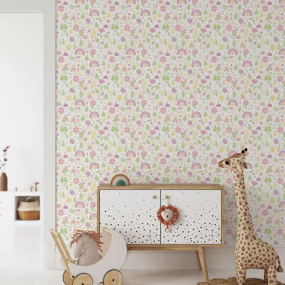 Tapety Rysunek dla dzieci z tęczą, kwiatami i drzewami Nr. a00296
