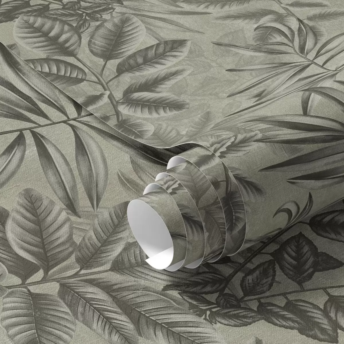 Tapety Szare tropikalne liście o różnych kształtach na tle w stylu vintage Nr. a00297