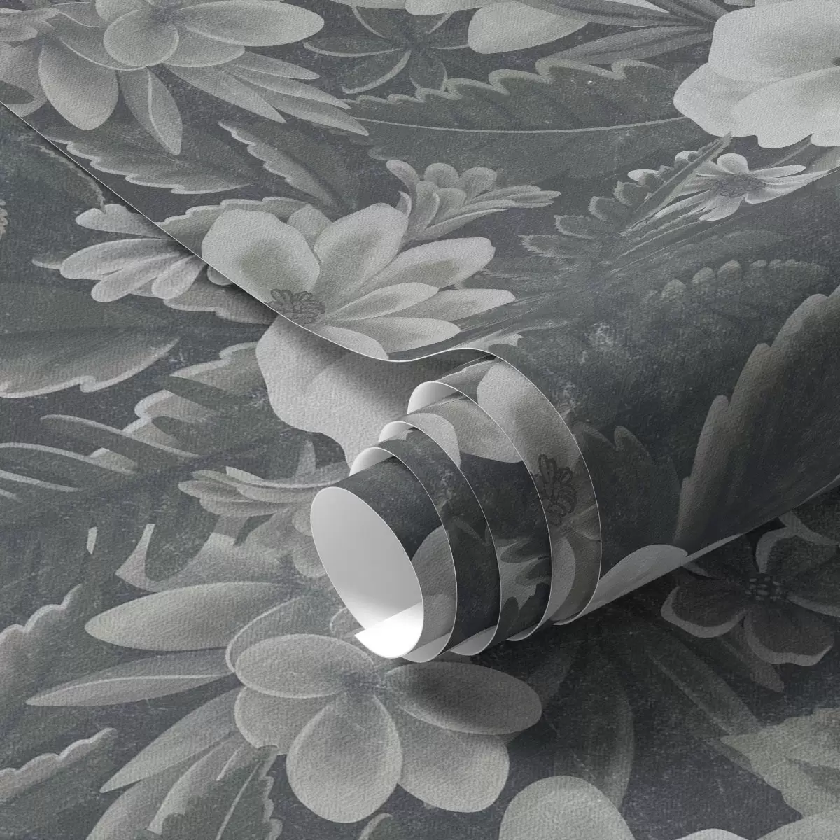 Tapety Szaro-biały kwiatowy wzór z efektem retro Nr. a00307