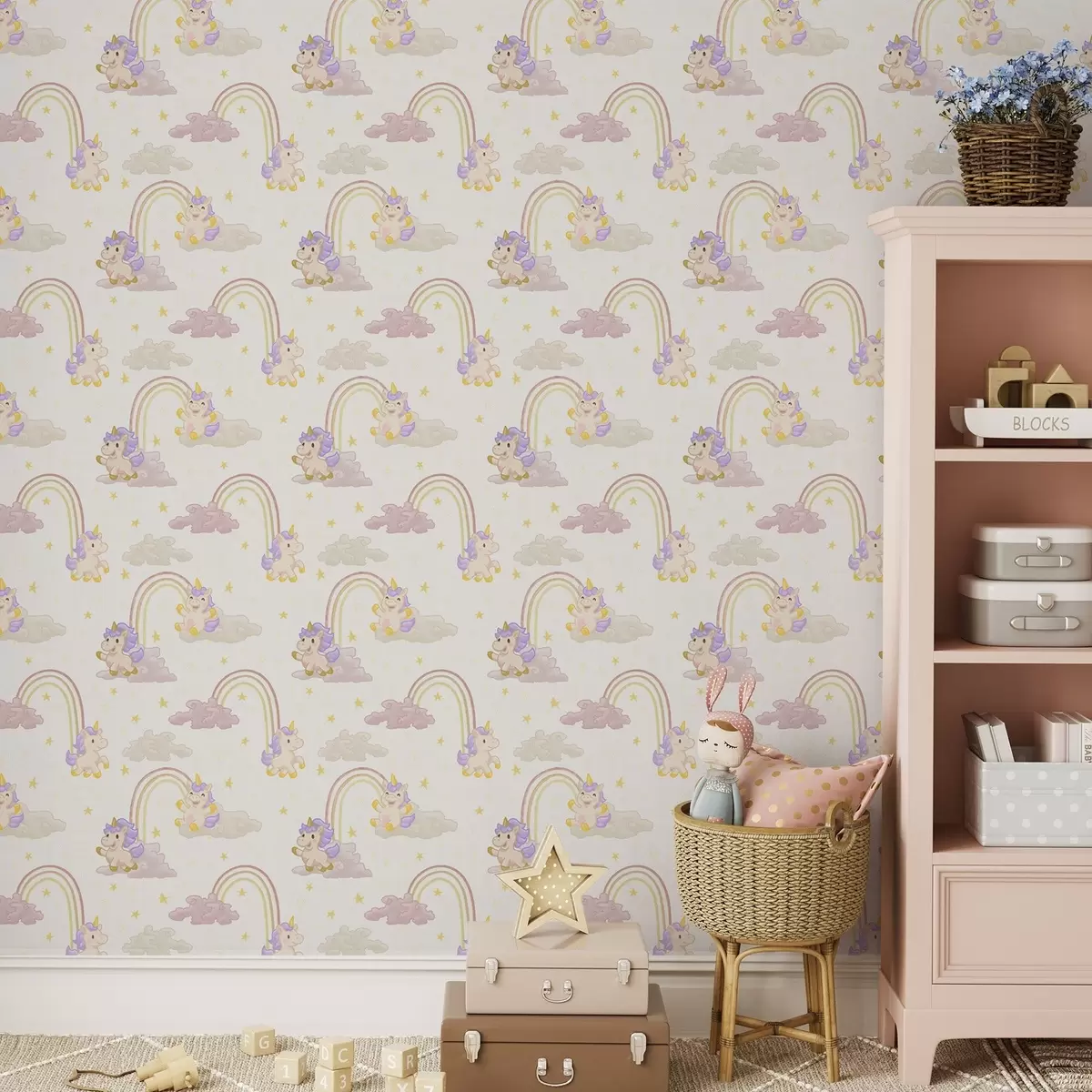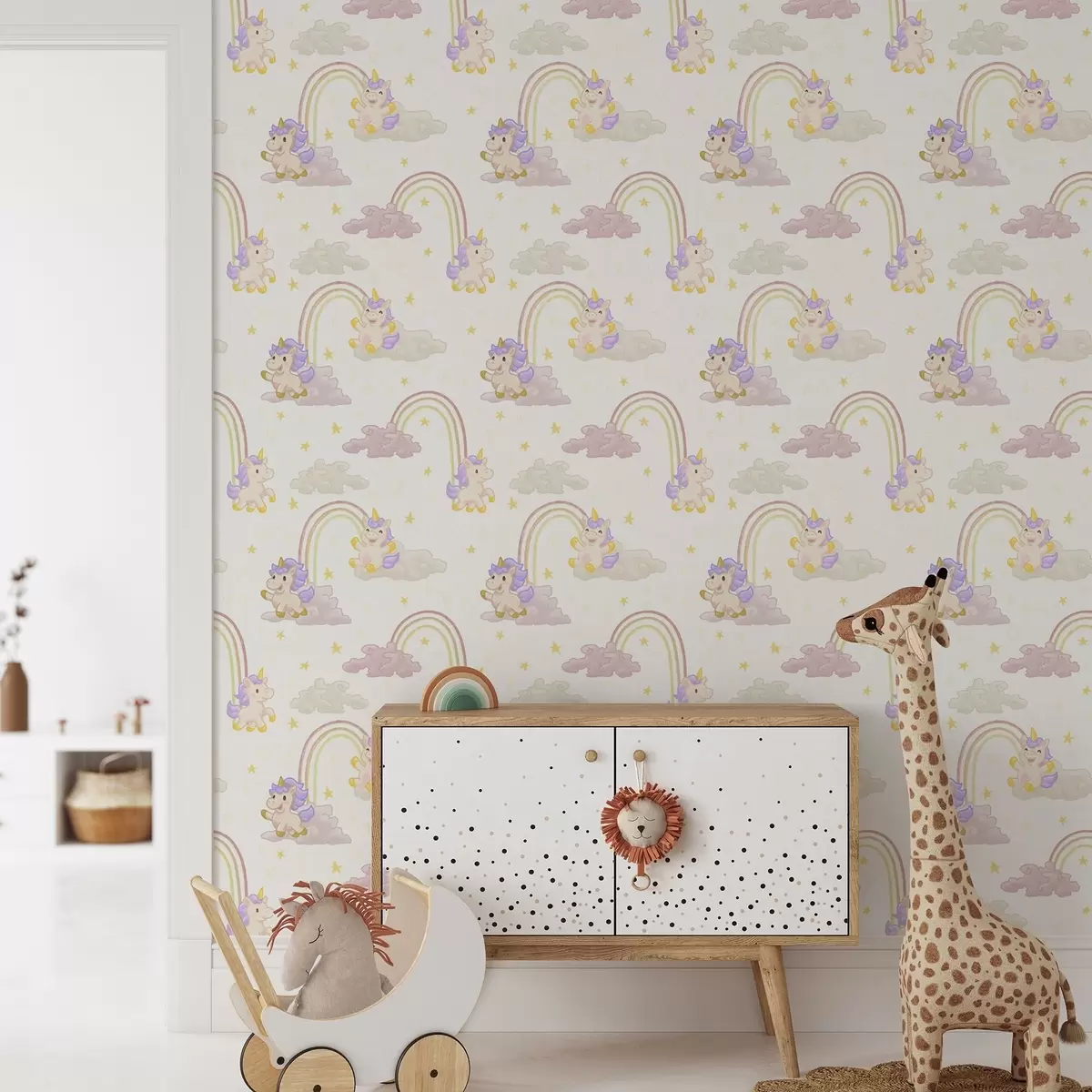 Tapety Uroczy jednorożec z tęczami i gwiazdami Nr. a00339