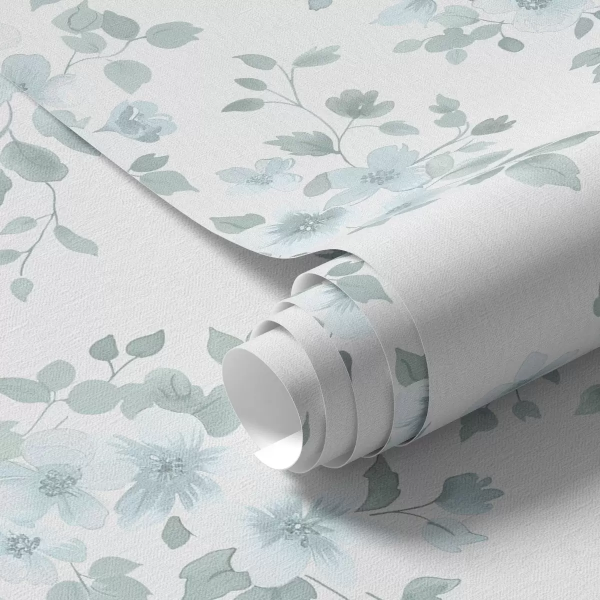 Tapety Jasnoniebieskie kwiaty na białym tle, styl akwareli Nr. a00364