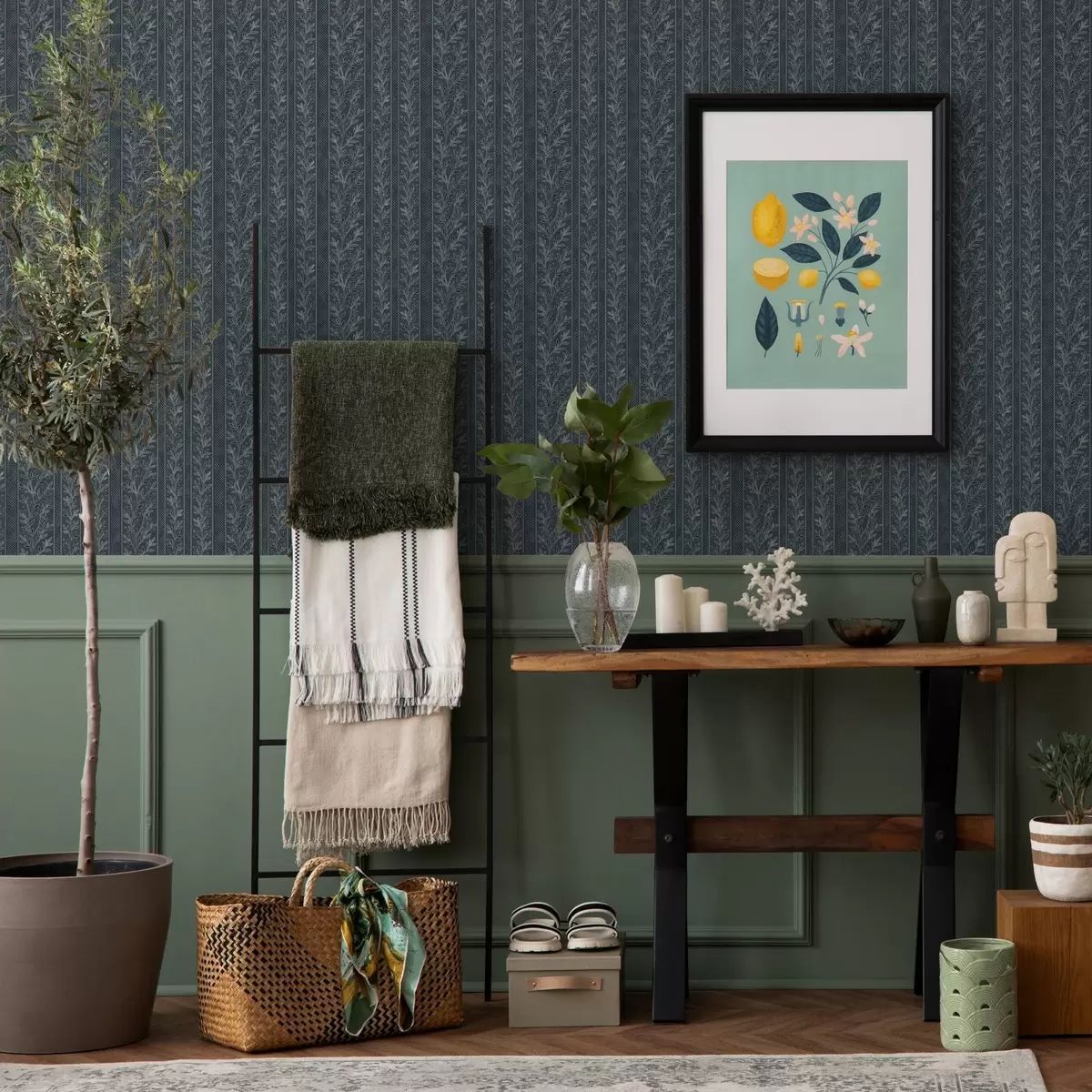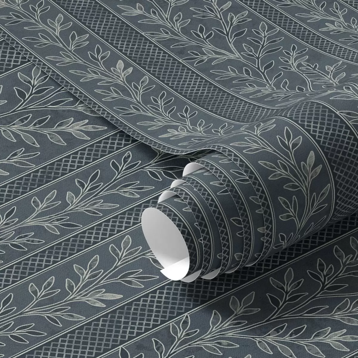 Tapety Wzór w paski z gałązkami na niebieskim tle Nr. a00425