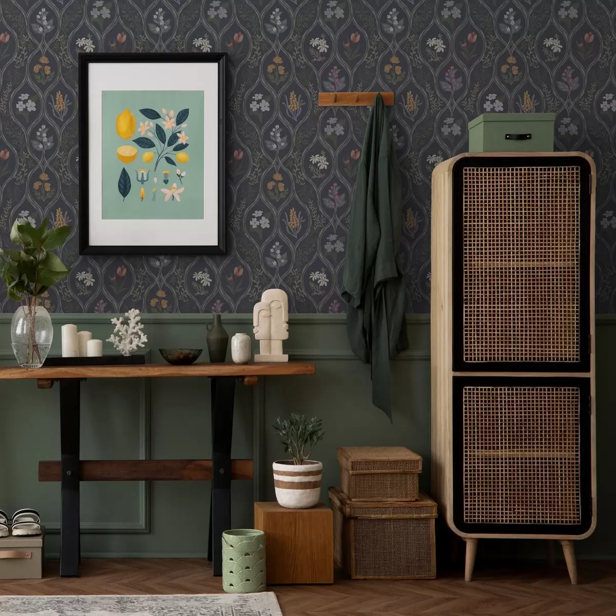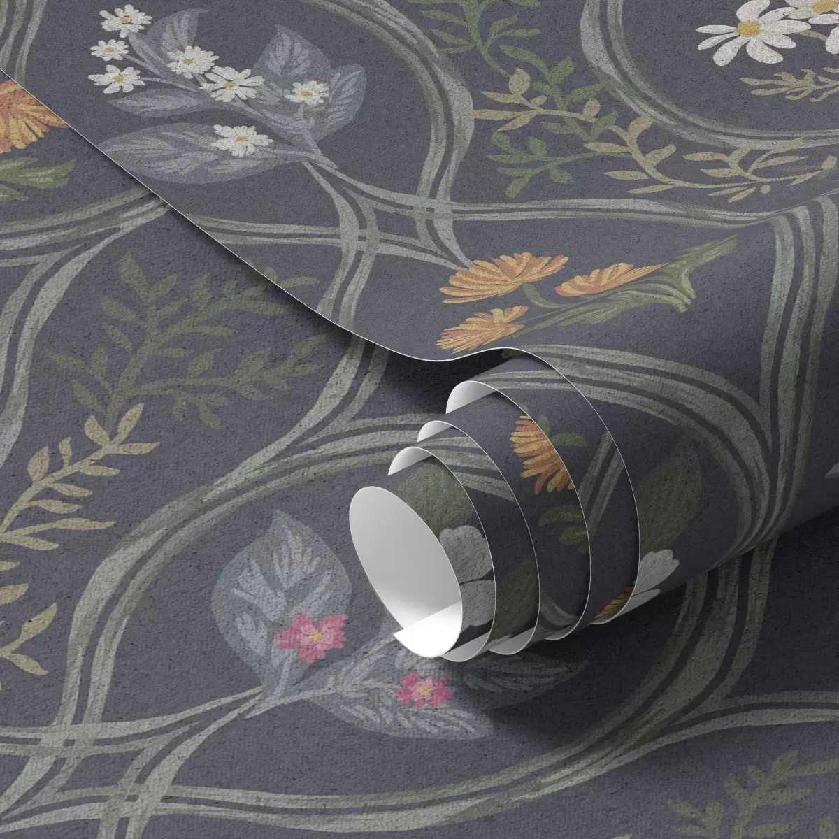 Tapety Ciemna ramka w stylu vintage z kolorowymi kwiatami ogrodowymi Nr. a00454