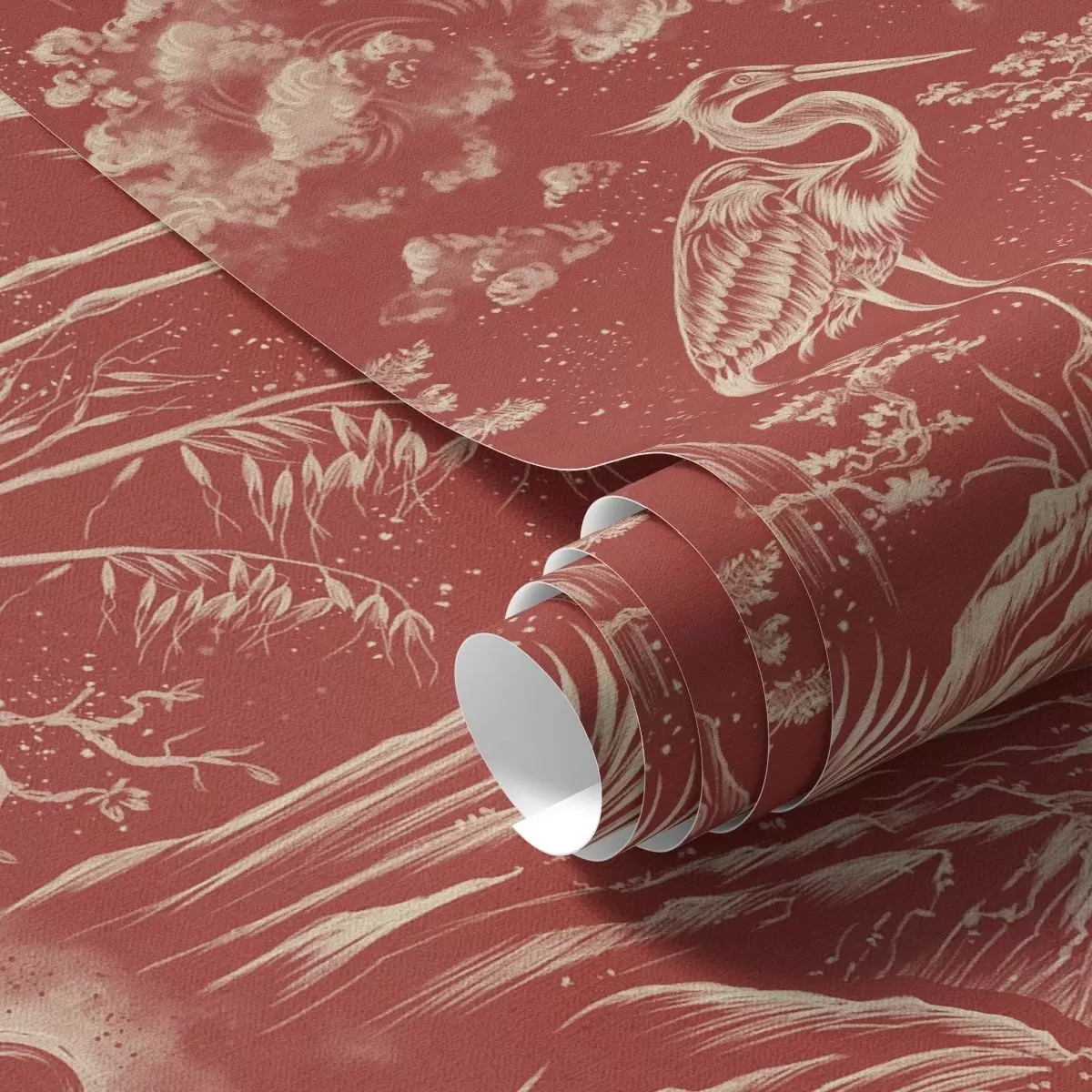 Tapety Czaple, góry i chmury w stylu japońskich rycin Nr. a00458