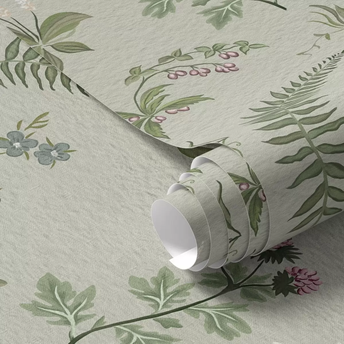 Tapety Rośliny botaniczne i paprocie w kolorze jasnoszarym i zielonym Nr. a00498
