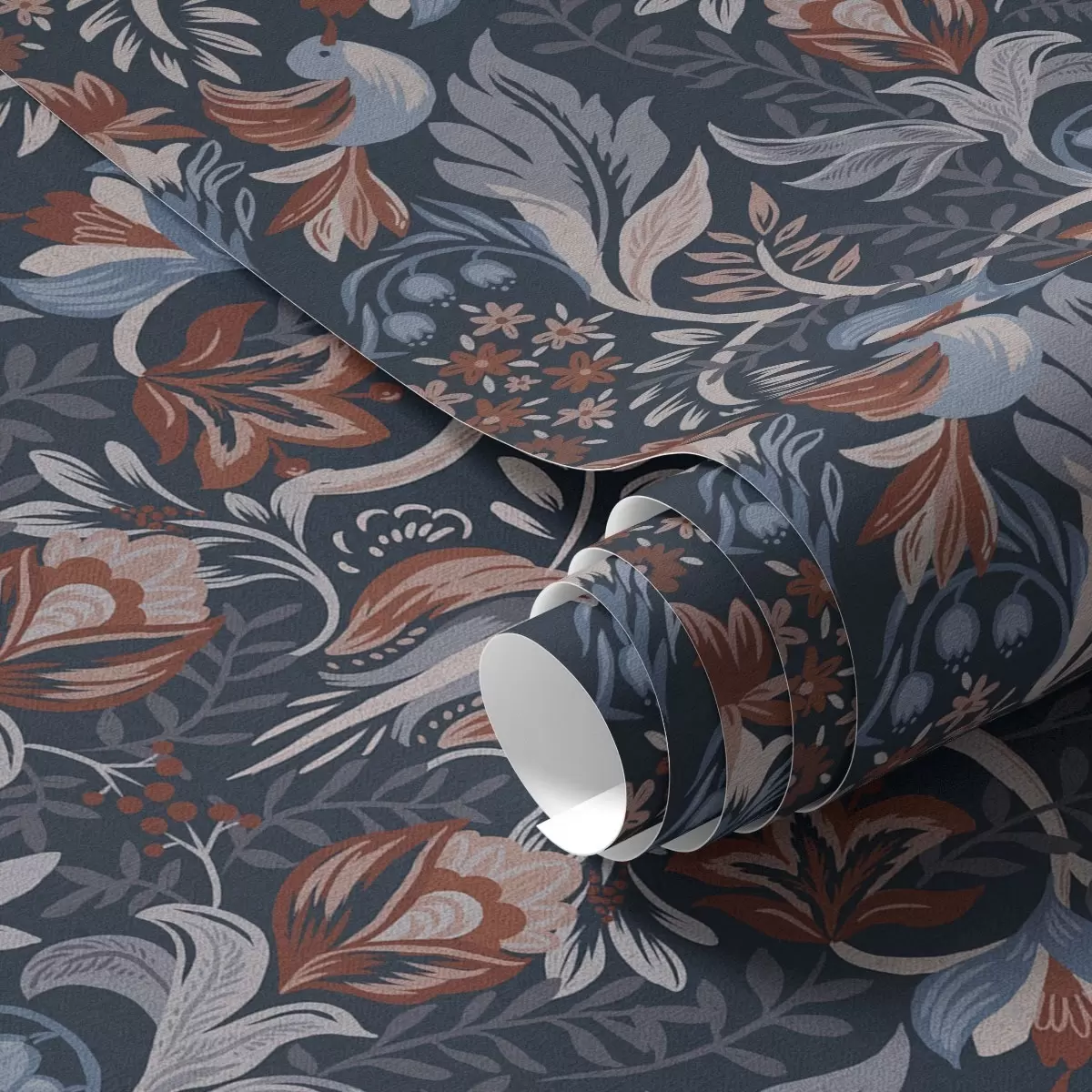 Tapety Ludowy ornament z ptakami, głęboki indygo Nr. a00502v1
