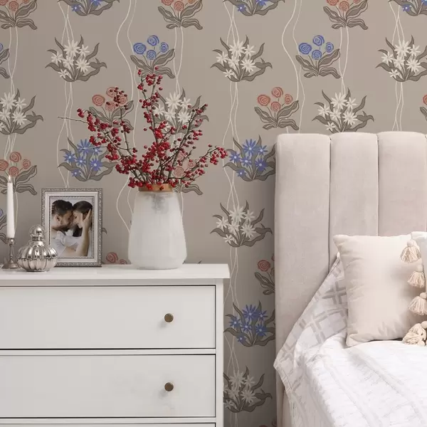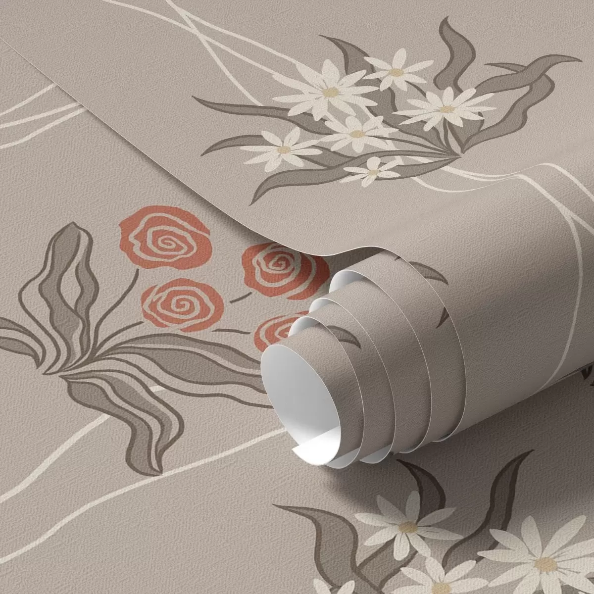 Tapety Retro kwiaty z falistymi liniami na ciepłym beżu Nr. a00503