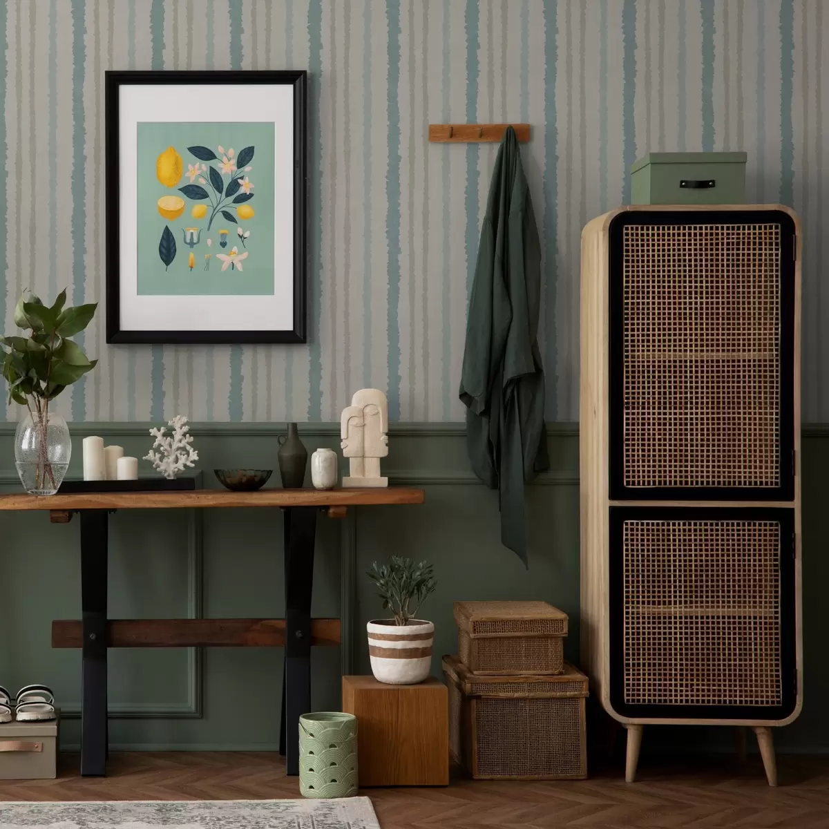 Tapety Turkusowo-beżowe paski z ręcznie malowanym efektem Nr. a00510v1