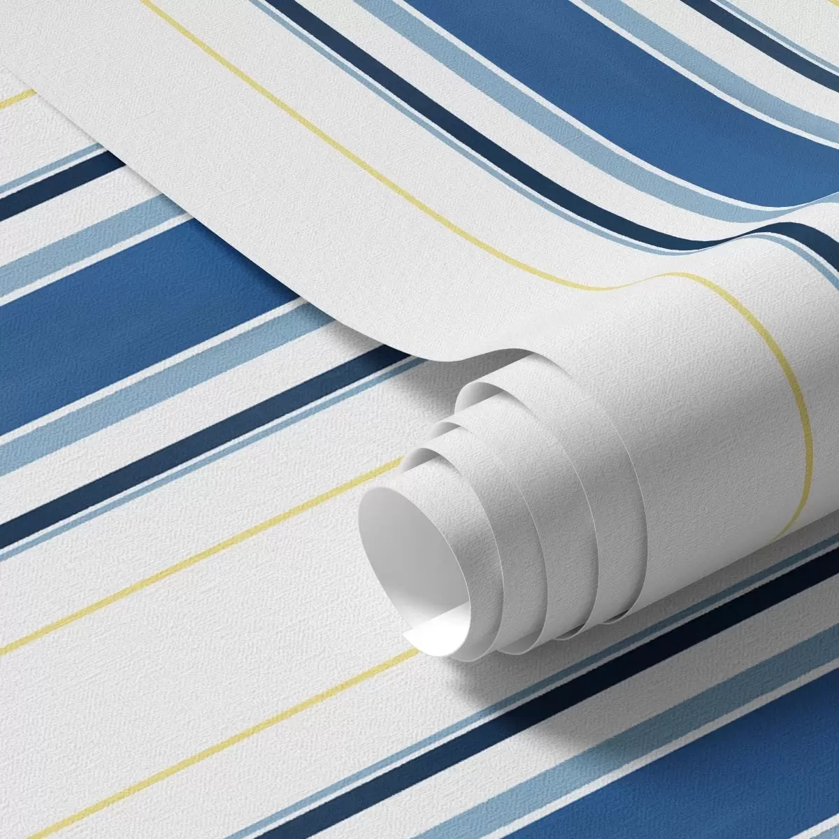 Tapety Szerokie niebieskie paski z cienkimi żółtymi liniami Nr. a00522