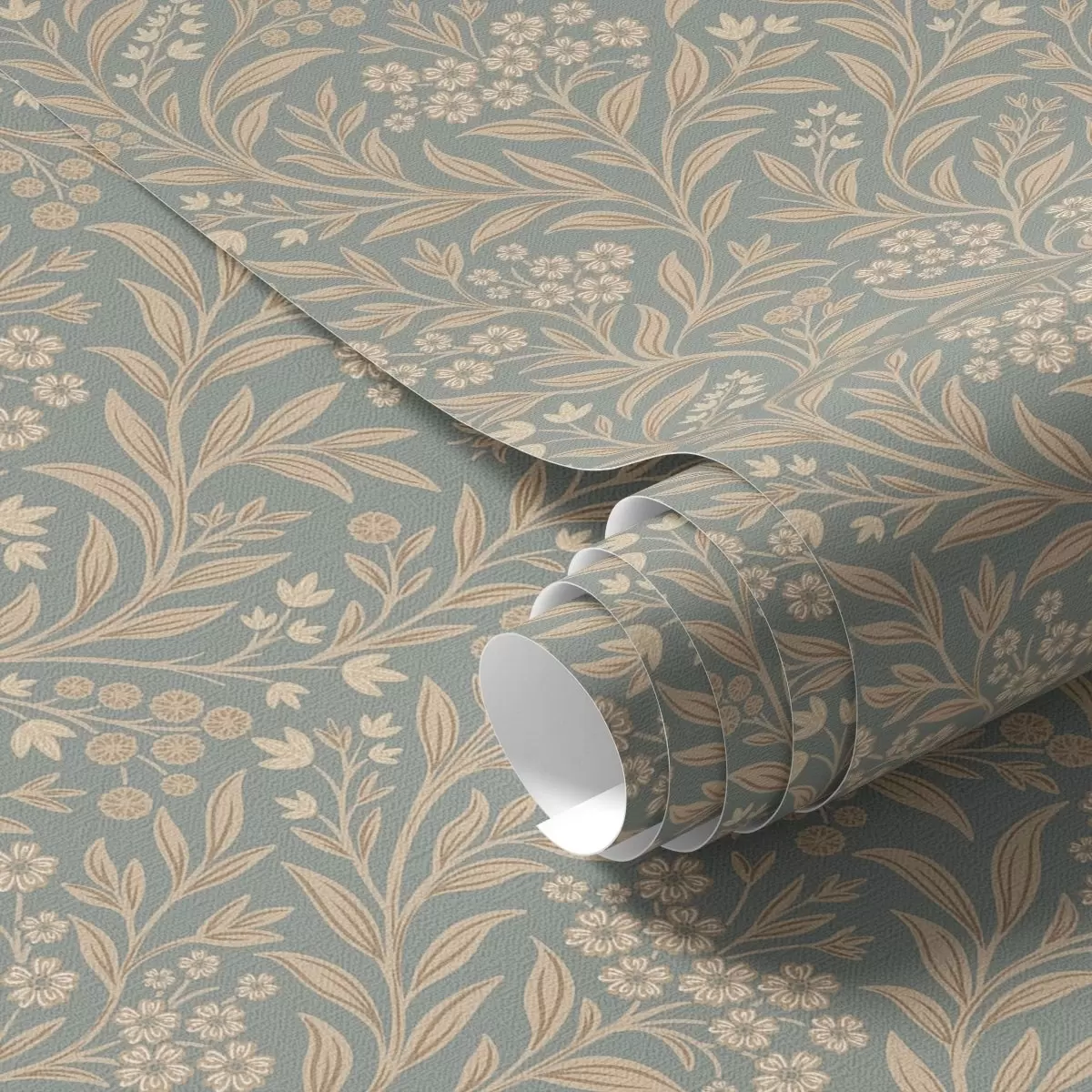 Tapety Styl Morrisa: beżowe gałęzie na szaro-zielonym tle Nr. a00569