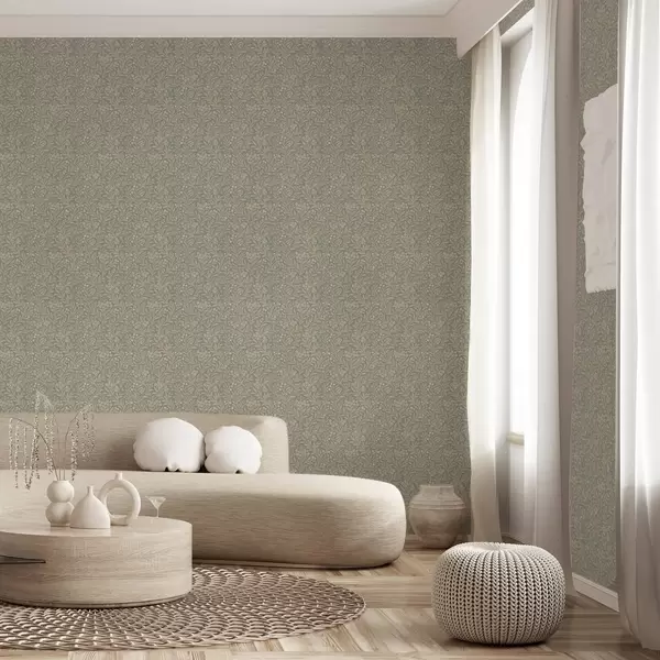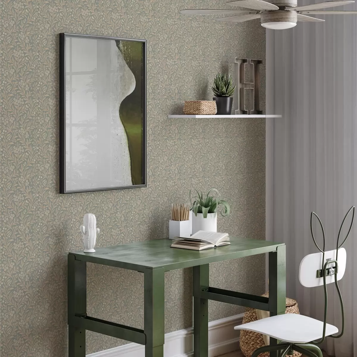 Tapety Styl Morrisa: beżowe gałęzie na szaro-zielonym tle Nr. a00569